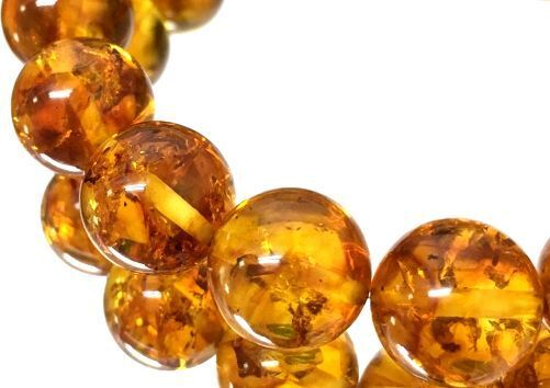 アンバーは正確には鉱物ではないのですが、パワー ストーンとしての解説として《石》と表記します。 アンバーは明るさと落ち着きを持つ石で、心身のエネ ルギーを上手に流せるようにサポートしてくれます。 エネルギー自体を強めるというよりは、体や心に余分な不要エネルギーが滞ることにより起こるバランスの乱れやエネルギー的な毒素が排出できていない為に起こる不調時に、それらの余分なエネルギーを大地に還してくれるアースのような役割をする事で、エネルギーの流れを綺麗にし、必要なだけのエネルギーを上手に使うことを教えてくれる石です。 天然琥珀:約12mm 内寸:約16cm | ||