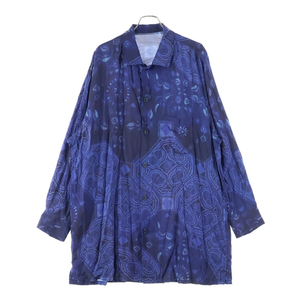 Yohji Yamamoto POUR HOMME ヨウジヤマモト プールオム ロングスリーブ 総柄デザイン リネン長袖シャツ ブルー HJ-B79-209