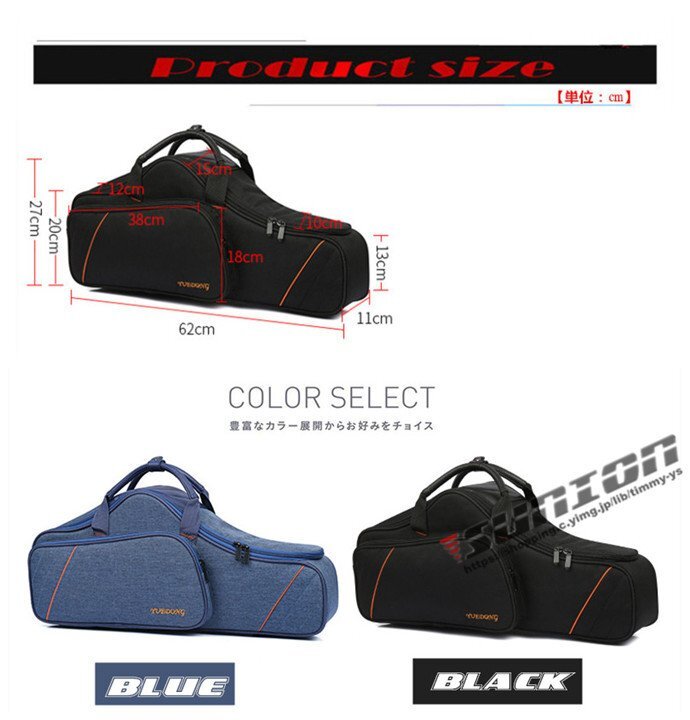 ALTO SAX CASE アルトサックス用ケース■管楽器 楽器ケース バッグ■アルト サクソフォーン用■カラー: ブラック/ブルー■素 材:防撥水1680Dオックスフォード■外寸法: 62×27×11cm■重量: 約930g■バックポケット■外寸法: 38×18×2cm■リュックタイプストラップ付属(ショルダー兼用)■内側には柔らかいボアが付きでサックスを衝撃保護※画像はイメージです。サックス本体は付属しておりません。一般的なアルトサックスを参考にしている汎用のケースです。