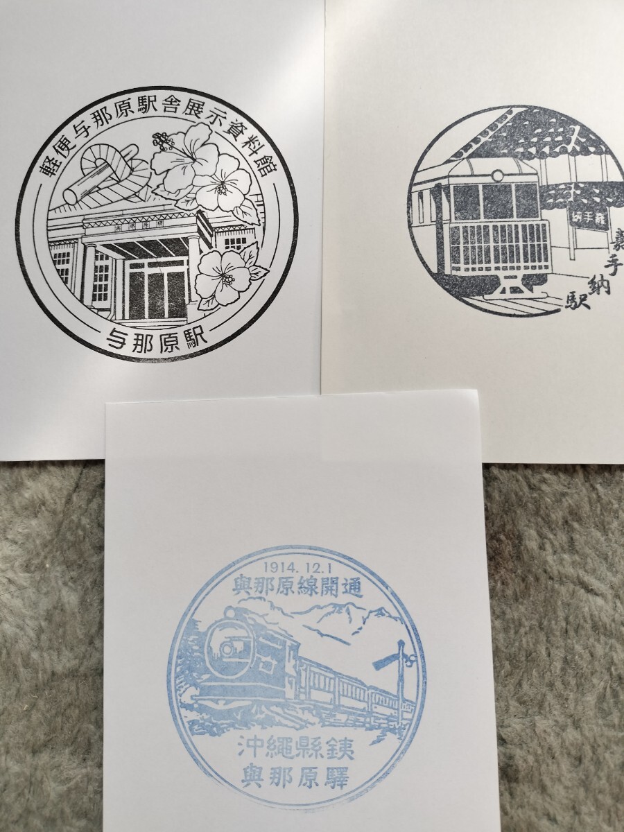 軽便 沖縄県鉄 駅スタンプ 3種 与那原駅、嘉手納駅
