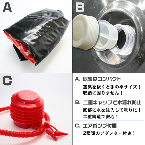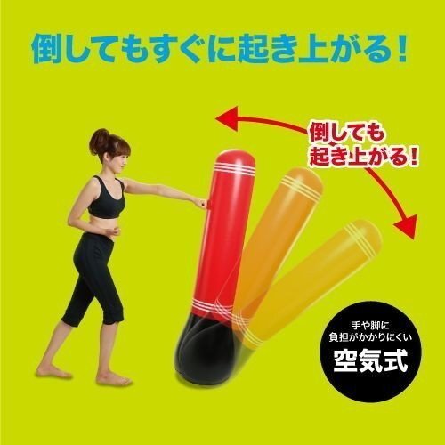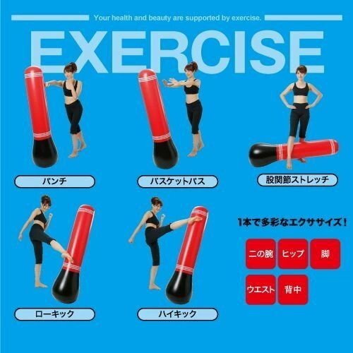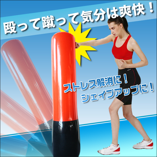 | 商品説明 | 軽い運動でウエストダウン↓☆ストレス解消しながらシェイプアップ ★ストレスを解消しながらボクササイズができるパンチバッグ! ☆ビニール製のエア式なのでご自宅でも気軽に使用できます。 ★底部から水を入れることで重りとなりバッグが起き上がります。 ☆空気を抜くと非常にコンパクトなので収納にも困りません! ★エアポンプも付属 ☆殴って蹴ってシェイプアップしちゃいましょう!♪ エア注入時 全長:約 150cm 上部直径:約 25cm 底部直径:約 30cm 材質:PVC 総重量:450グラム(収納時) |