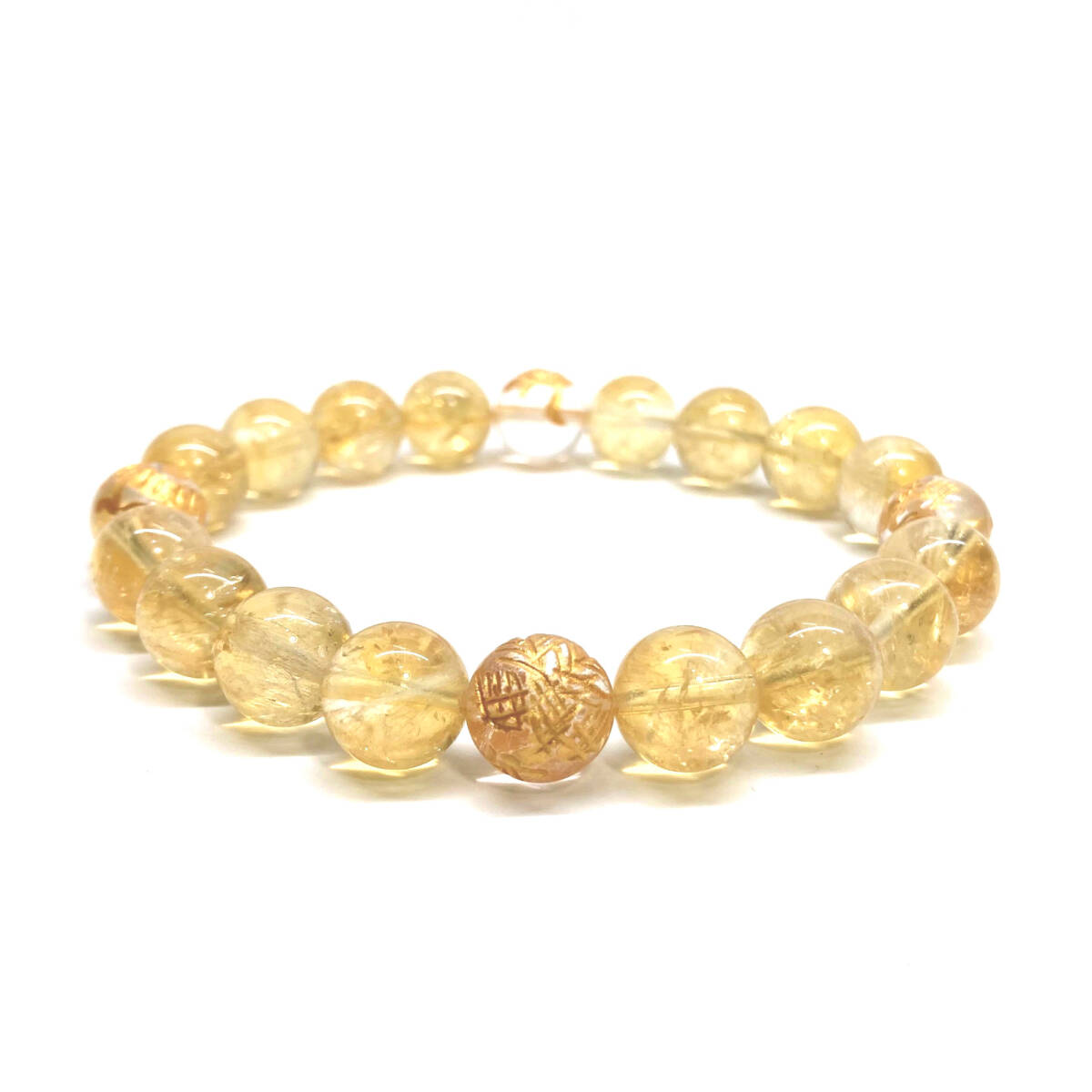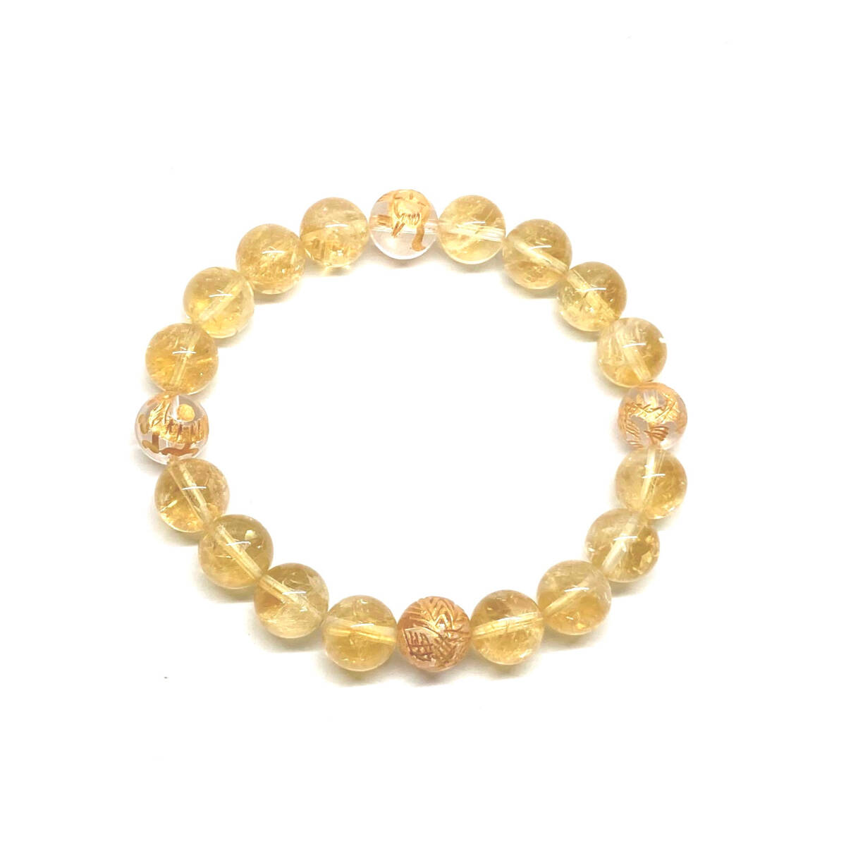 10mm 四神獣金彫水晶×シトリン パワーストーン ブレスレット天然石 運気上昇 開運 幸運 恋愛運 青龍 白虎 玄武 朱雀 ☆