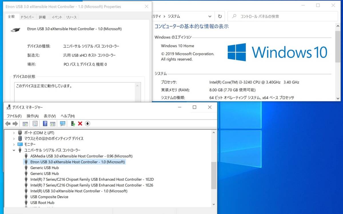 上記の通り、Windows10PCでの認識と動作確認(USBメモリの認識)していますが、