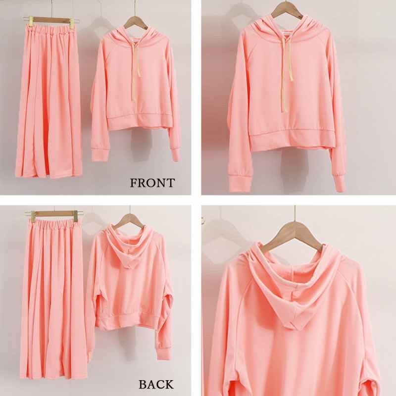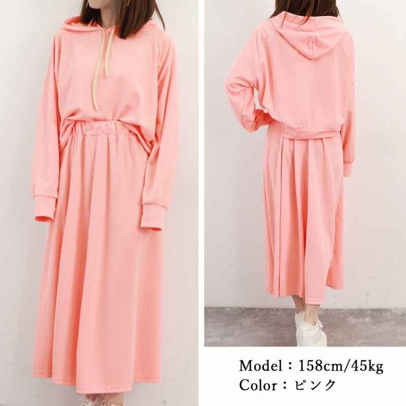 スポーティーなパーカーとロングスカートのお得な2点セットです。