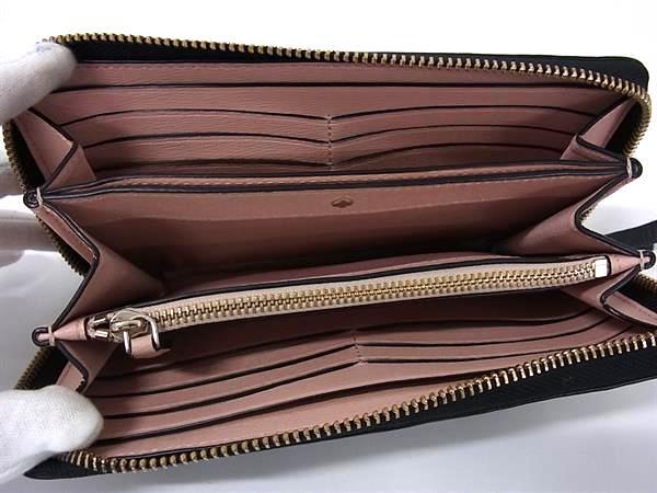 ■美品■ kate spade ケイトスペード PWR00059 レザー ラウンドファスナー 長財布 ウォレット 札入れ レディース ブラック系 DI8968