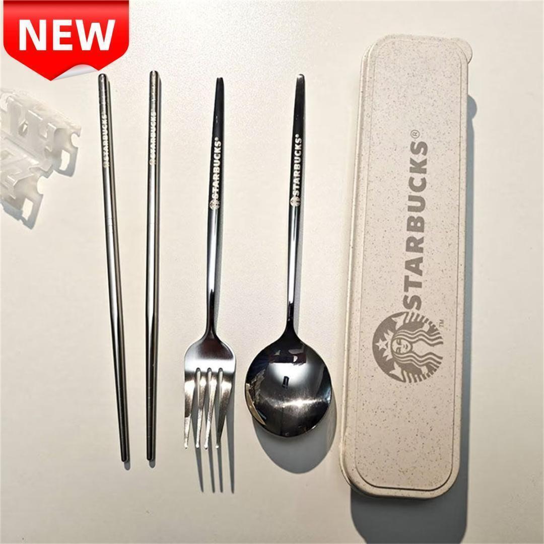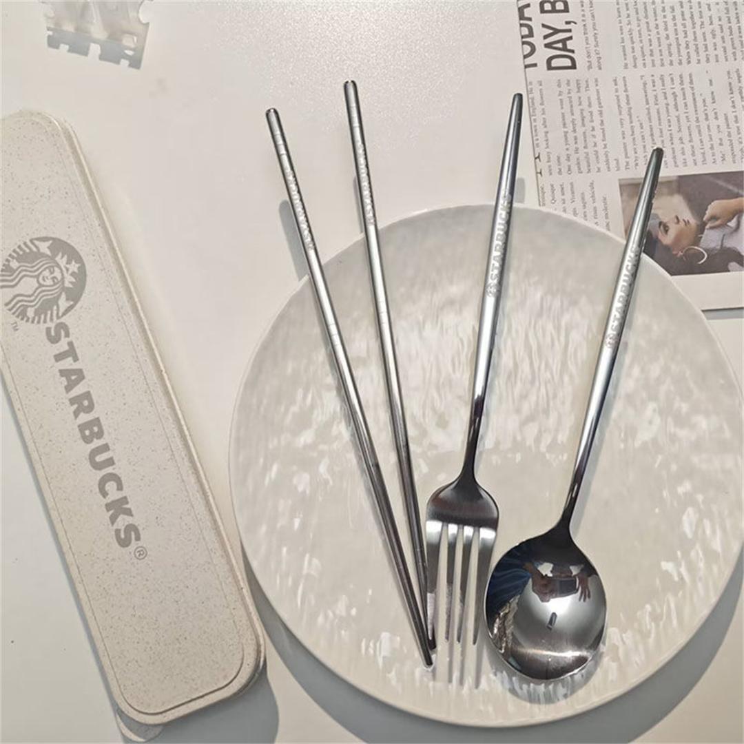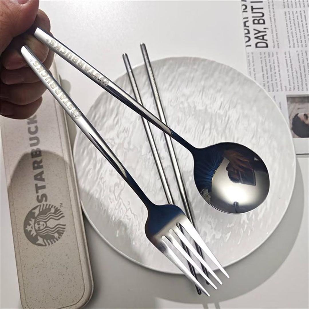 [新品]スターバックス カトラリーセット 箸 フォーク スプーン ステンレス製 携帯用 ケース付き エコ ピクニック ランチ用 持ち運び便利