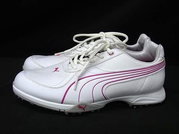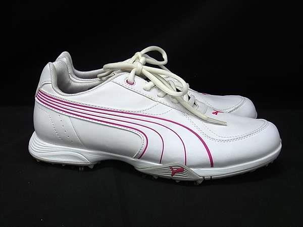 ■美品■ PUMA プーマ レザー ゴルフシューズ 表記サイズ 4 1/2 (約23.5cm) 靴 シューズ レディース ホワイト系×ピンク系 DJ0852
