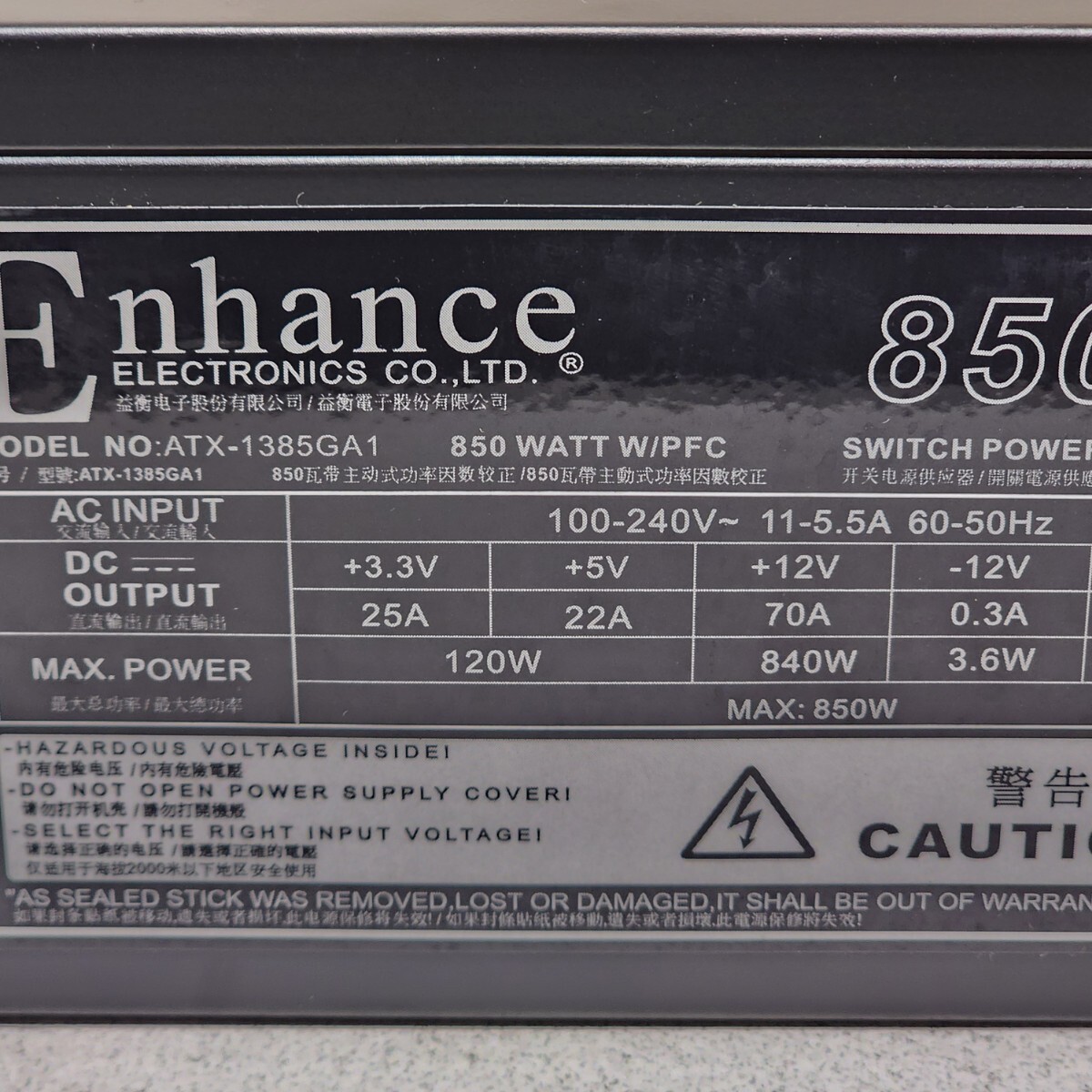 Enhance ATX-1385GA1 850W 80PLUS GOLD認証 ATX電源ユニットの出品です。