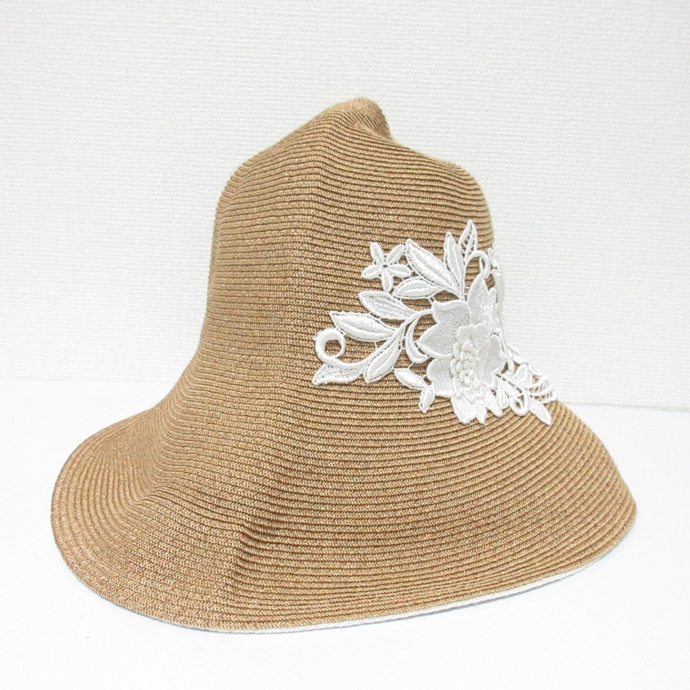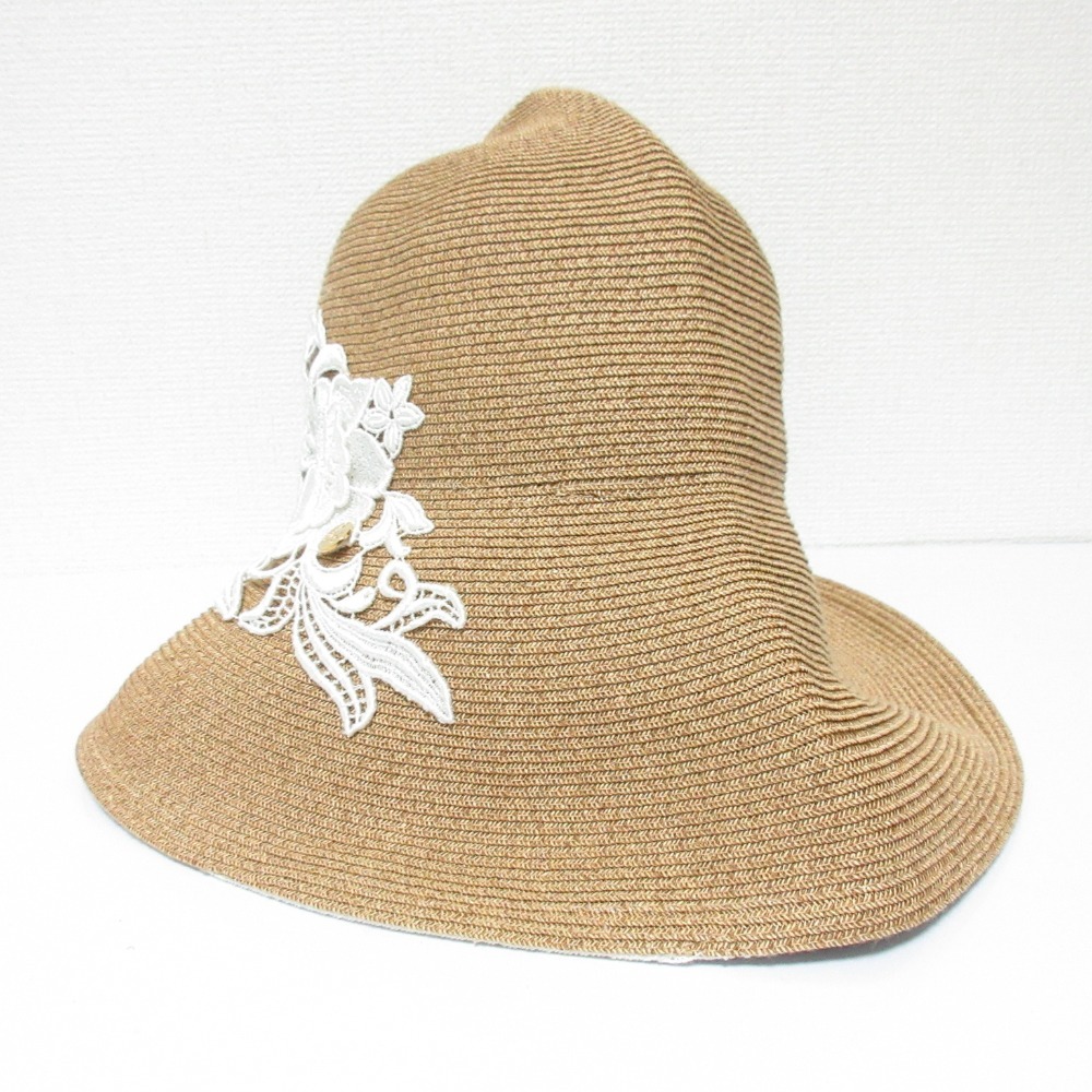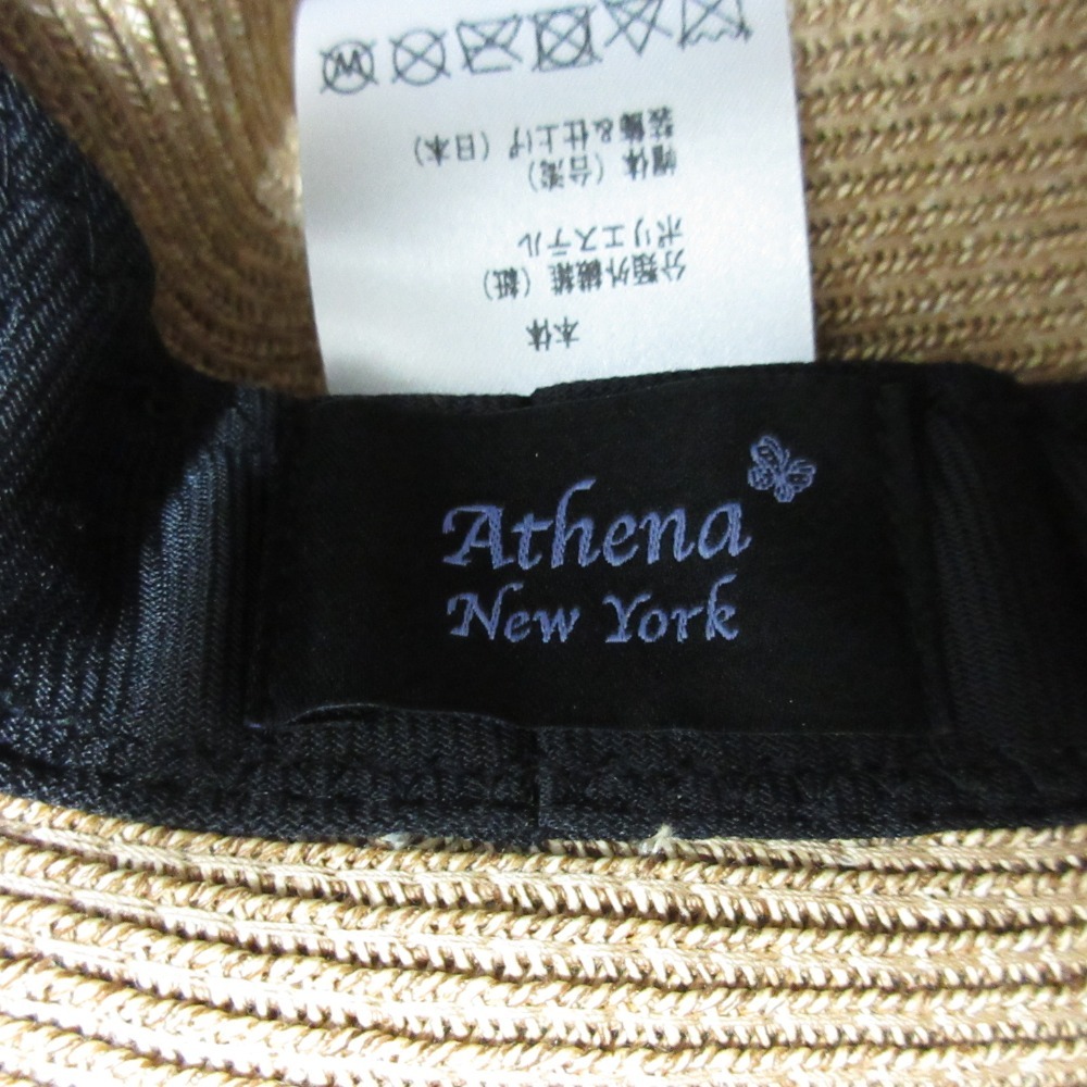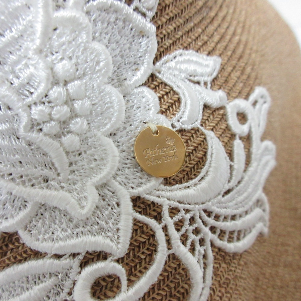 美品 Athena New York アシーナニューヨーク レース装飾 ワイドブリム ペーパーハット 帽子 ベージュ