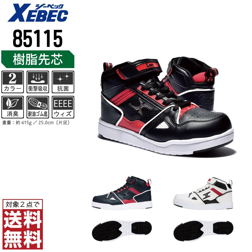 XEBEC 安全靴 25.5 ハイカット 85115 スニーカー セーフティーシューズ 先芯入り 耐油 ホワイト ジーベック ★ 対象2点 送料無料 ★