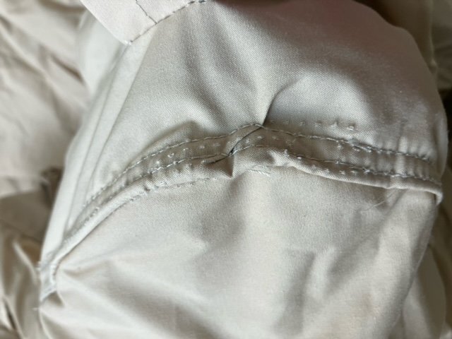 全体的に縫製の目とびやほつれ、ほどけているところがある。