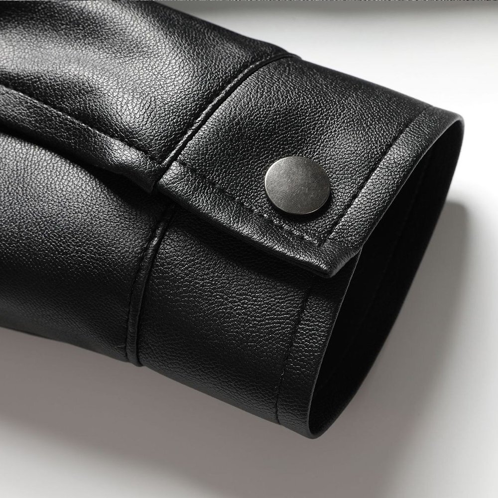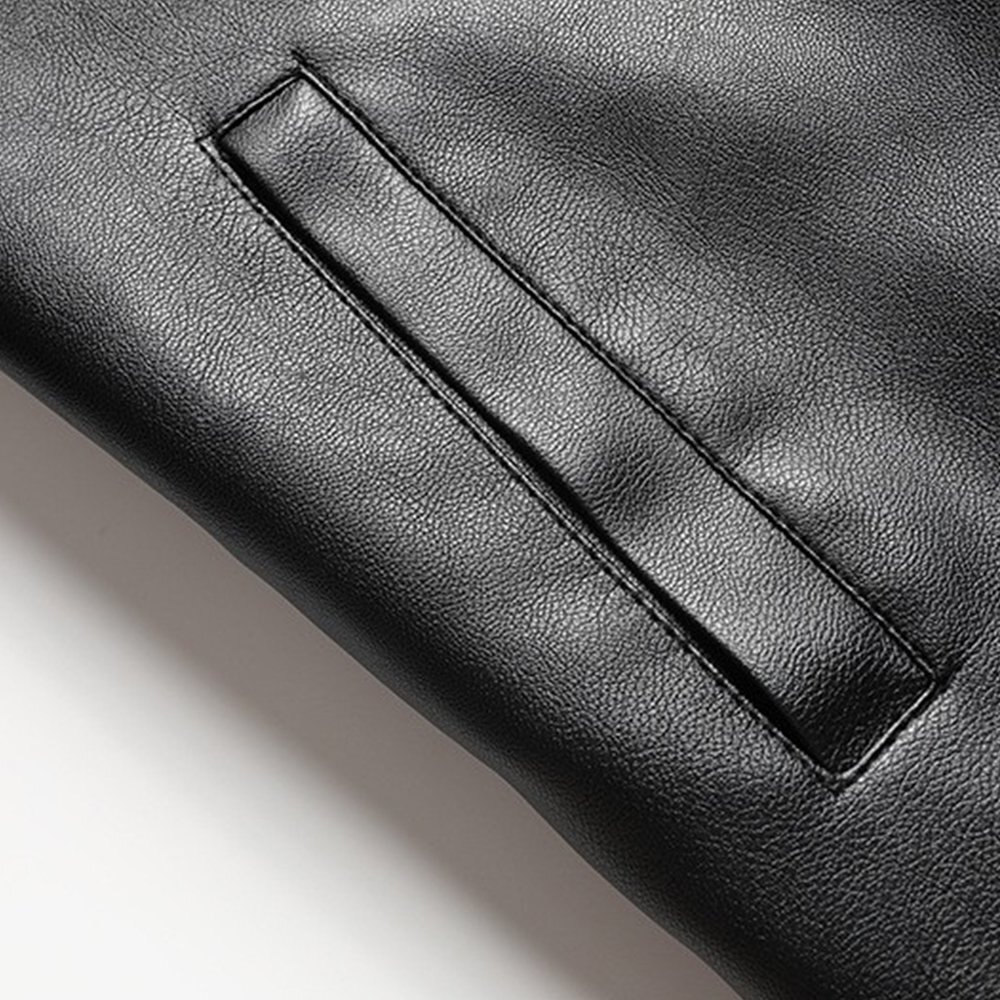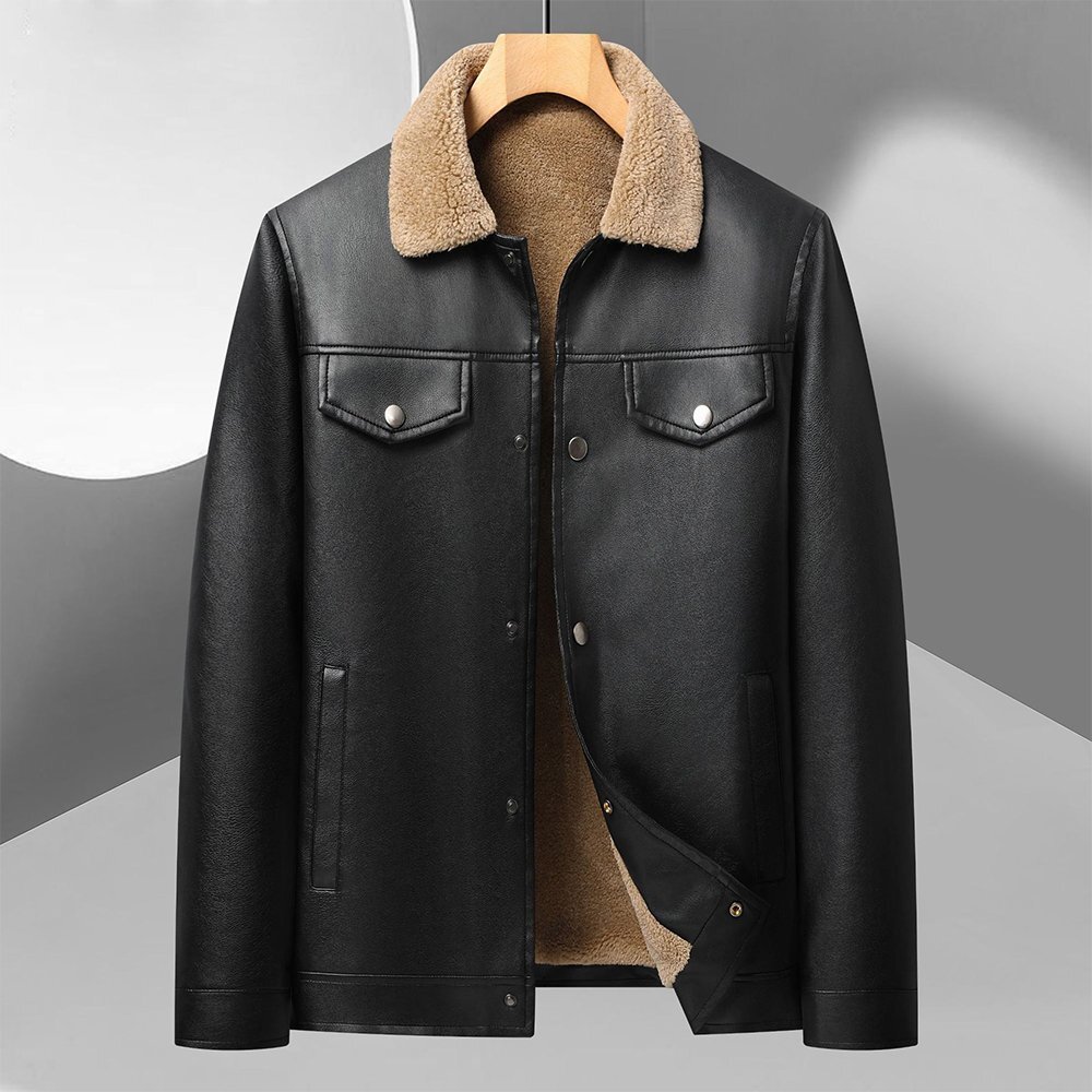 全体的には イタリア製の上質エコPUレザー を使用し、軽量でありながら柔らかく耐久性に優れた仕上がり。内側は裏起毛仕様で冬季の保温性を高め、快適に着用可能。襟付きデザインとシンプル無地のレトロカラーはクラシックで洗練された印象を与え、カジュアルからビジネスカジュアルまで幅広くコーディネートできます。