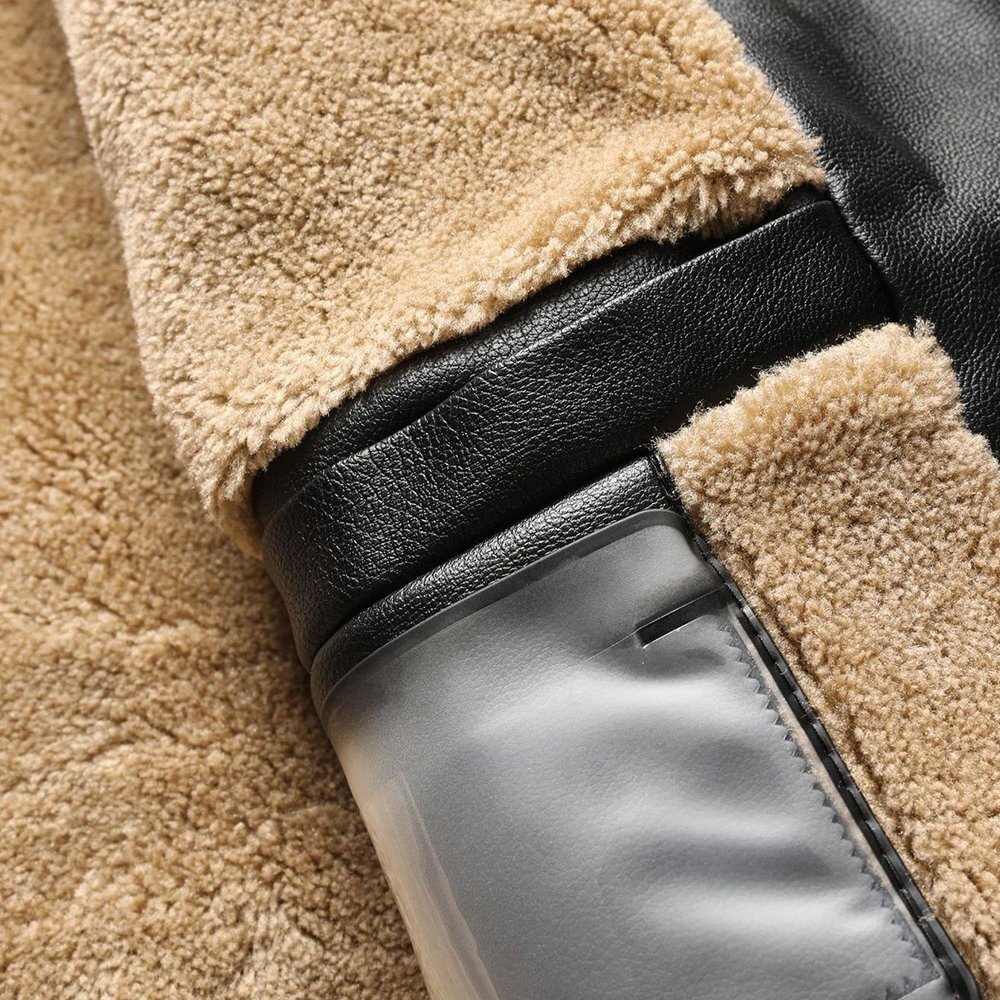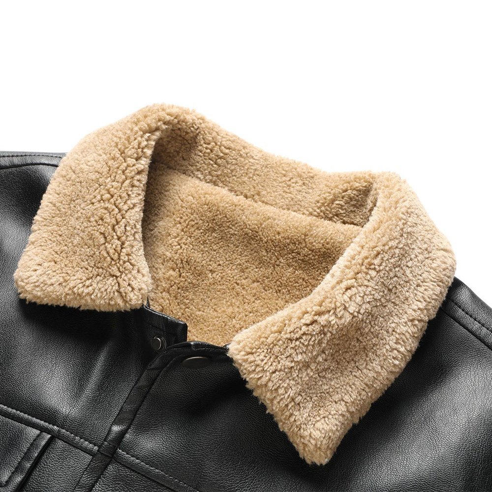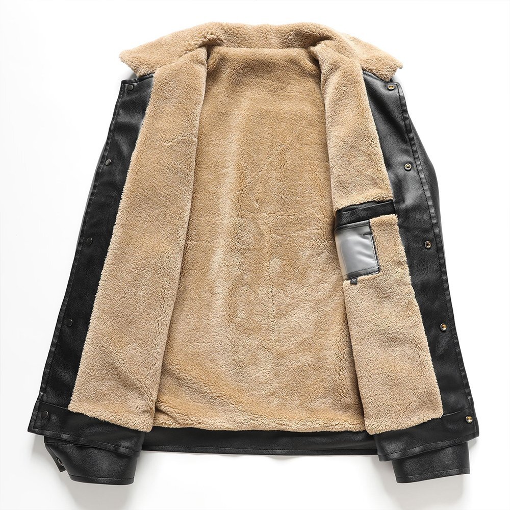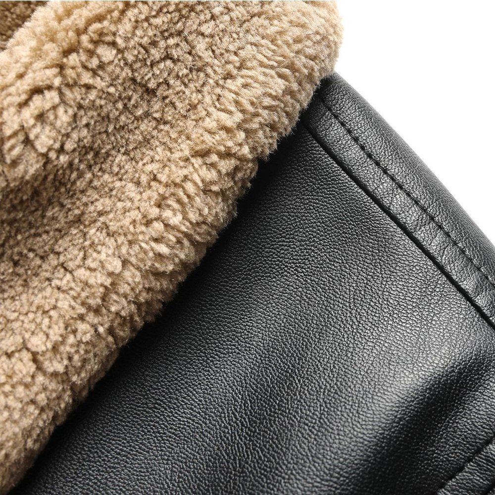全体的には イタリア製の上質エコPUレザー を使用し、軽量でありながら柔らかく耐久性に優れた仕上がり。内側は裏起毛仕様で冬季の保温性を高め、快適に着用可能。襟付きデザインとシンプル無地のレトロカラーはクラシックで洗練された印象を与え、カジュアルからビジネスカジュアルまで幅広くコーディネートできます。
