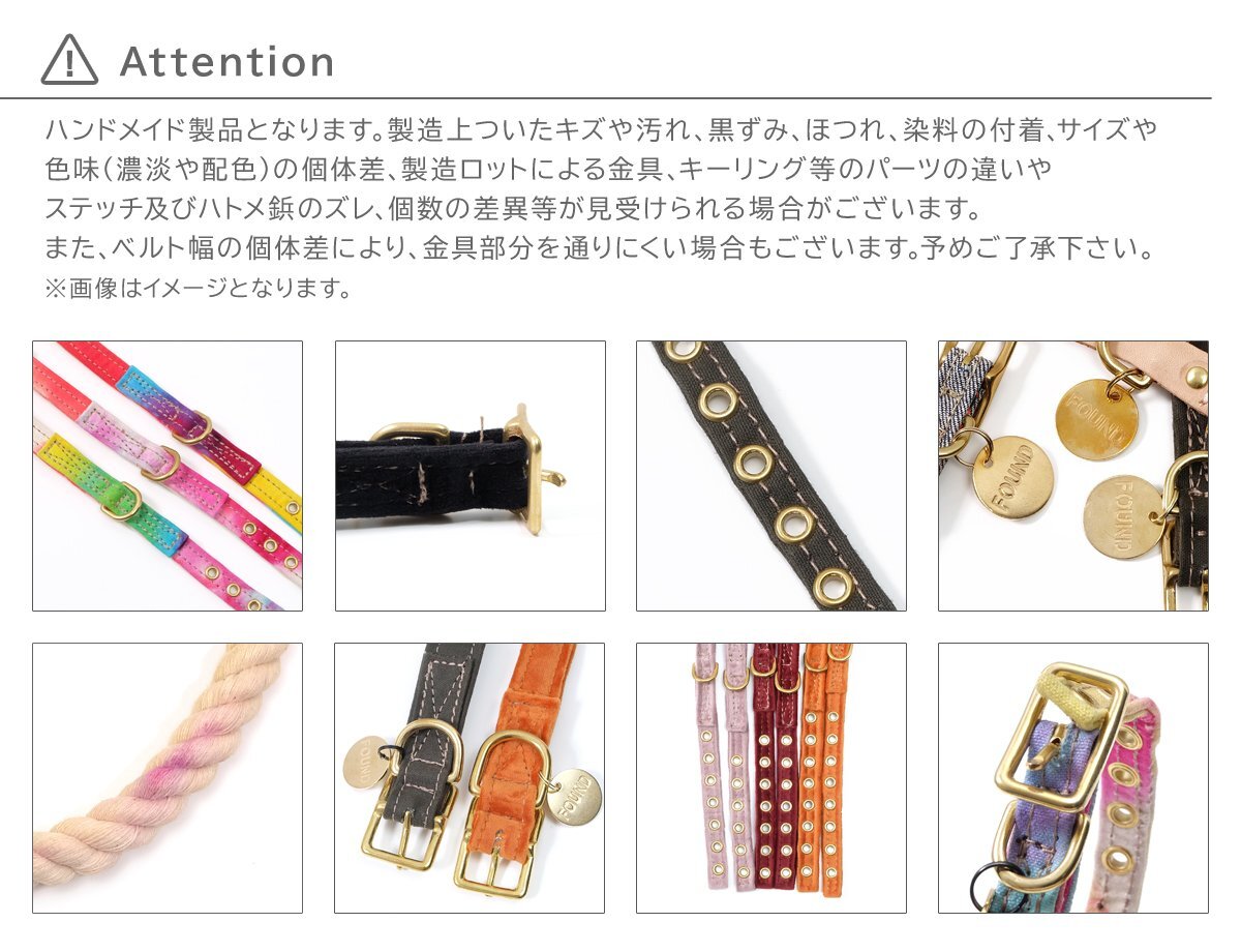 首輪本体に色ムラが見受けられる場合や、ステッチ及びハトメ鋲の位置にズレ等が見受けられる場合もございます。