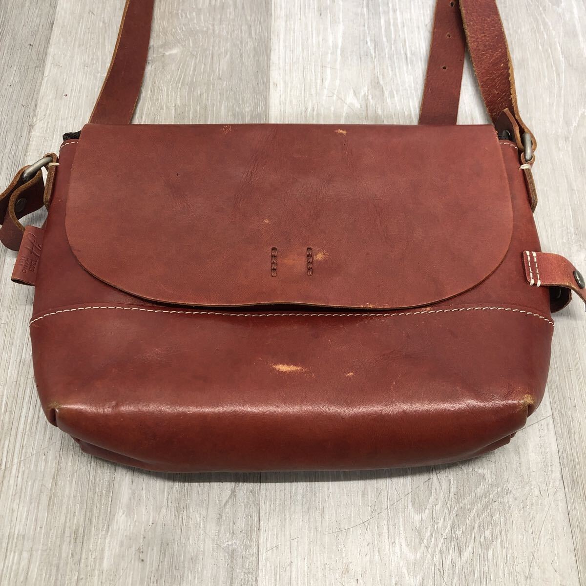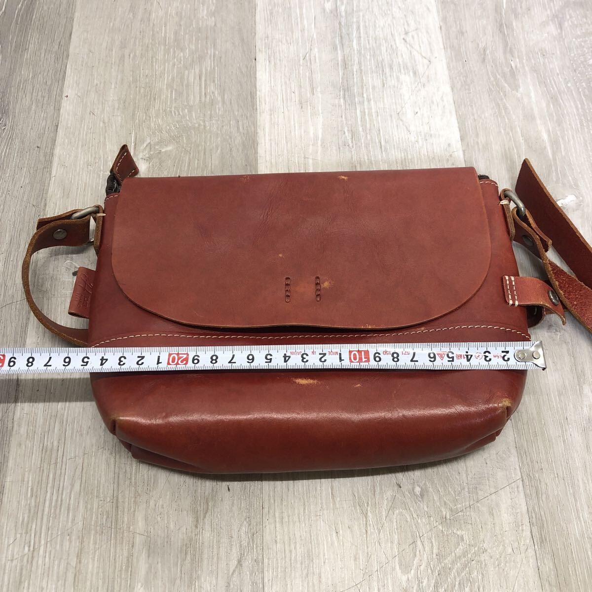 ★1092 H1203 MANO FACE マノフェス 本革 レザー ショルダーバッグ ブラウン系 斜め掛け メッセンジャーバッグ 現状品