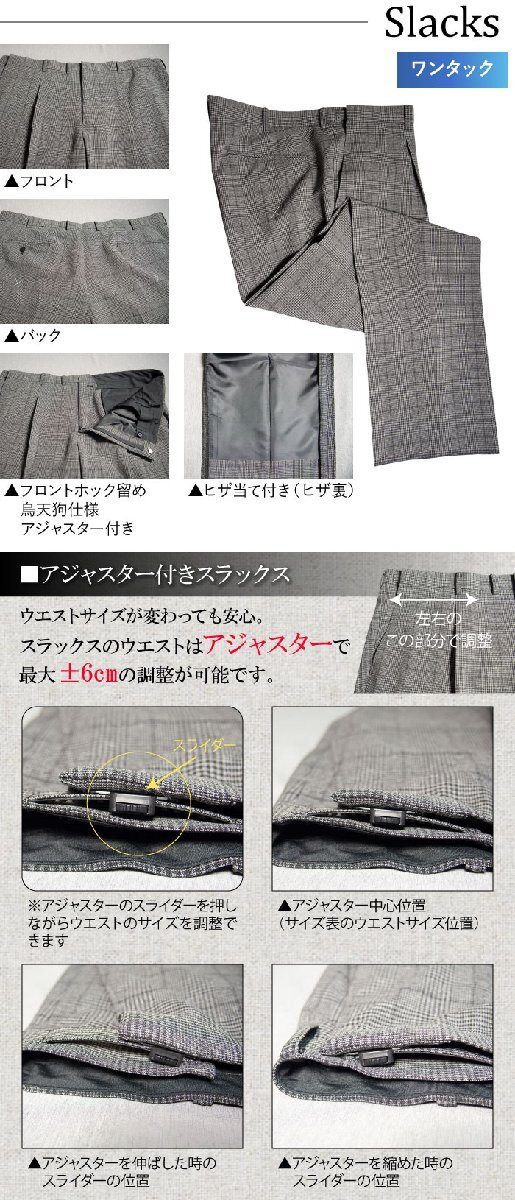 | スラックス | ワンタック ホック留め 烏天狗仕様 ウエストアジャスター付き(±6cm) ヒザ当て付き |