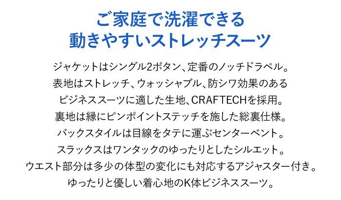 | 生地 | 表地:ポリエステル100% ※CRAFTECH(クラフテック) ●防シワ効果あり ●ストレッチ ●ウォッシャブル ![]() ※商品縫付のタグに洗濯方法が記載されていますので、お洗濯の際は必ずご参照ください。 |