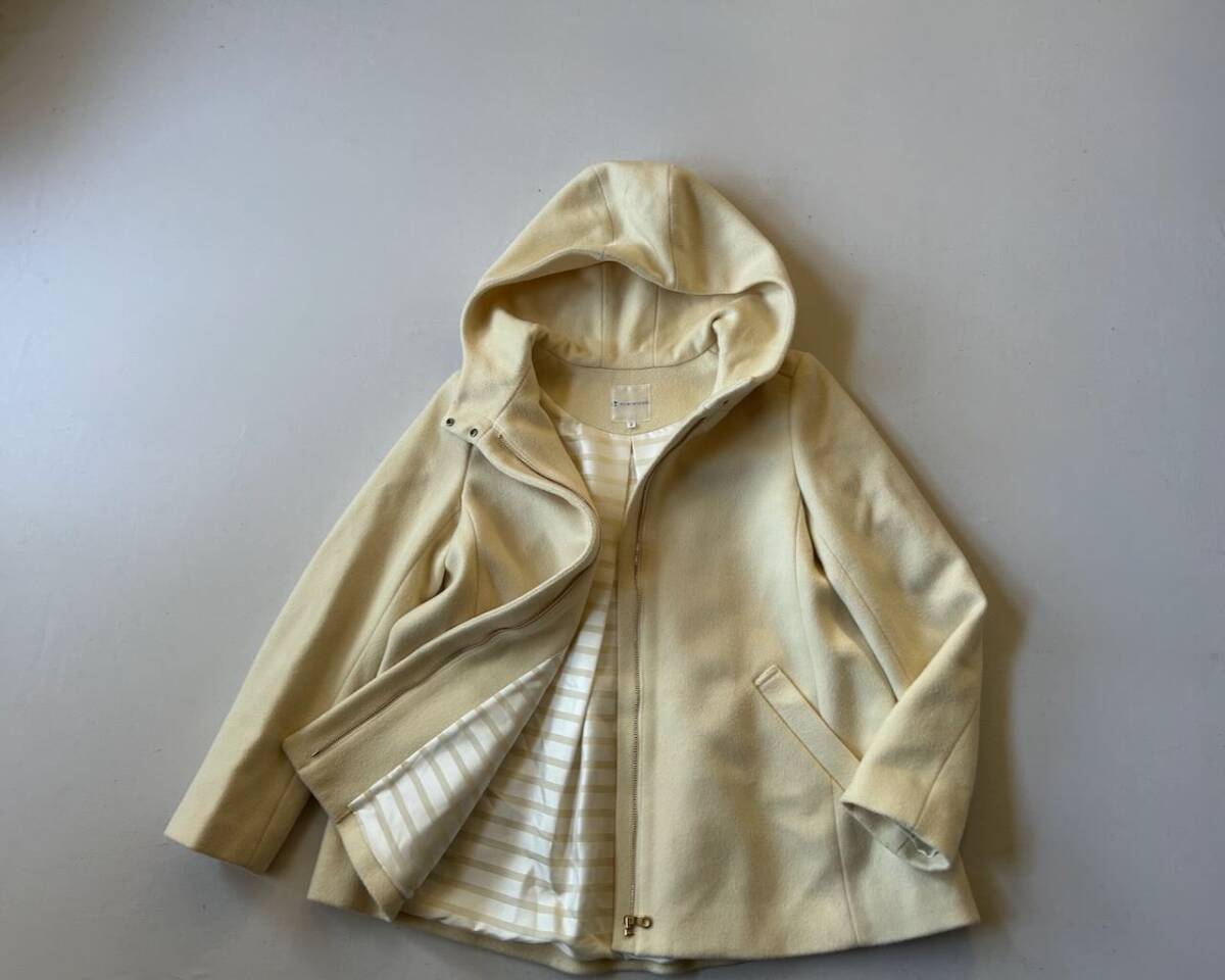 組曲 KUMIKYOKUの、これからの季節に活躍してくれるフーディージャケット、コートです。 色 オフホワイト フロントファスナー開閉 首元スナップボタン留め 左右ハンドポケット付き サイズ表示 2 実寸 着丈62cm 胸囲50cm 肩幅35cm 袖丈55cm くらい (平置きにて計測しております。) 素材 毛94% ナイロン6% 裏地付き *画像でコーディネートした他アイテムは付属致しません。 中古品とお考え下さい。 特に目立つ汚れやキズはありません。 また、写真画像はモニター環境や撮影状況などに応じて、実際の商品とお色と少し異なる場合があります。よろしくお願いいたします。 ダメージの見落としがある場合はご容赦ください。 他、気になる点はご質問下さい。 なお、落札後のキャンセルはできません。 発送後はノーリターン、ノークレームでお願いします。 オークション終了後、2日以内にご連絡が取れる方のみご入札下さい。 万が一連絡が遅くなってしまう場合は、オークション終了前に、必ず質問欄より お問い合わせ下さい。 | ||||||||
