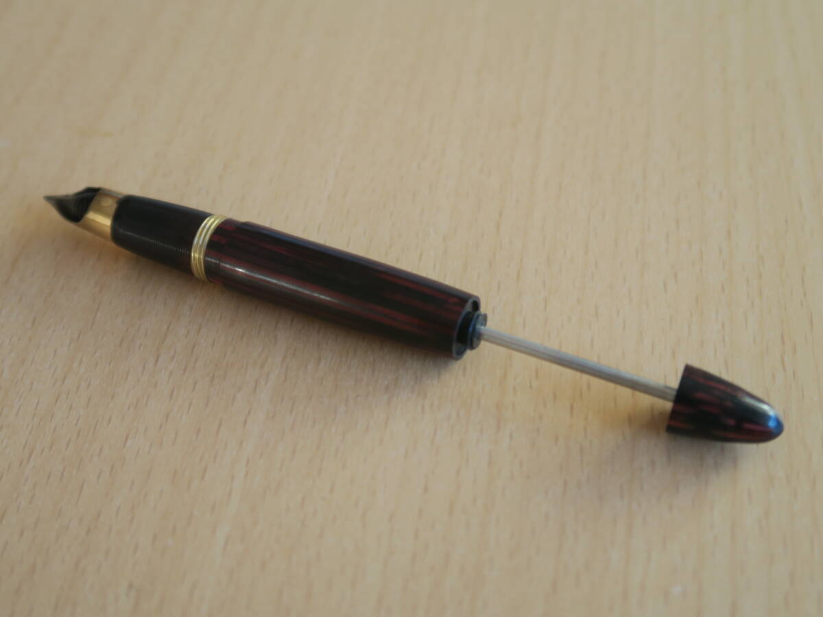 尾部を回すと、中のピストン部を引き出すことができますが、やや渋いです。