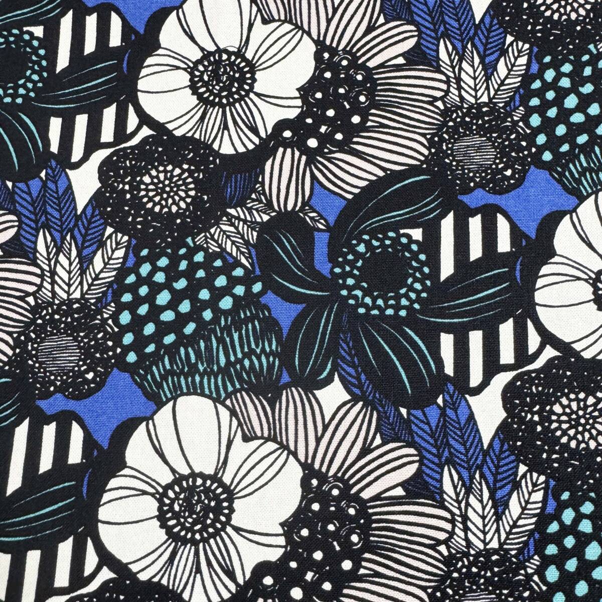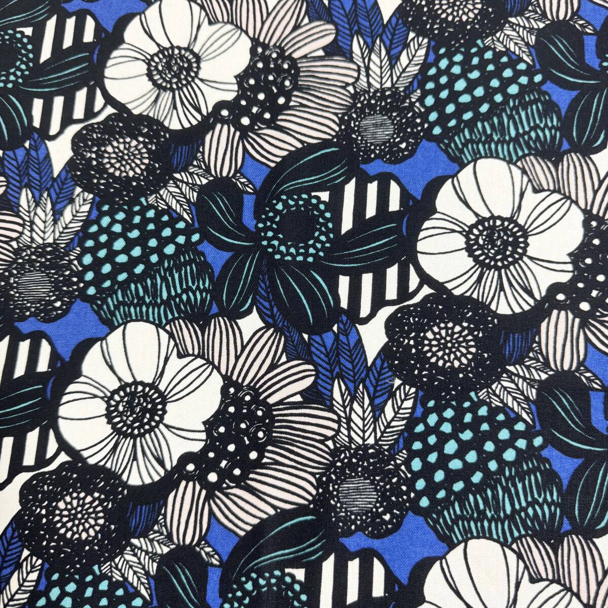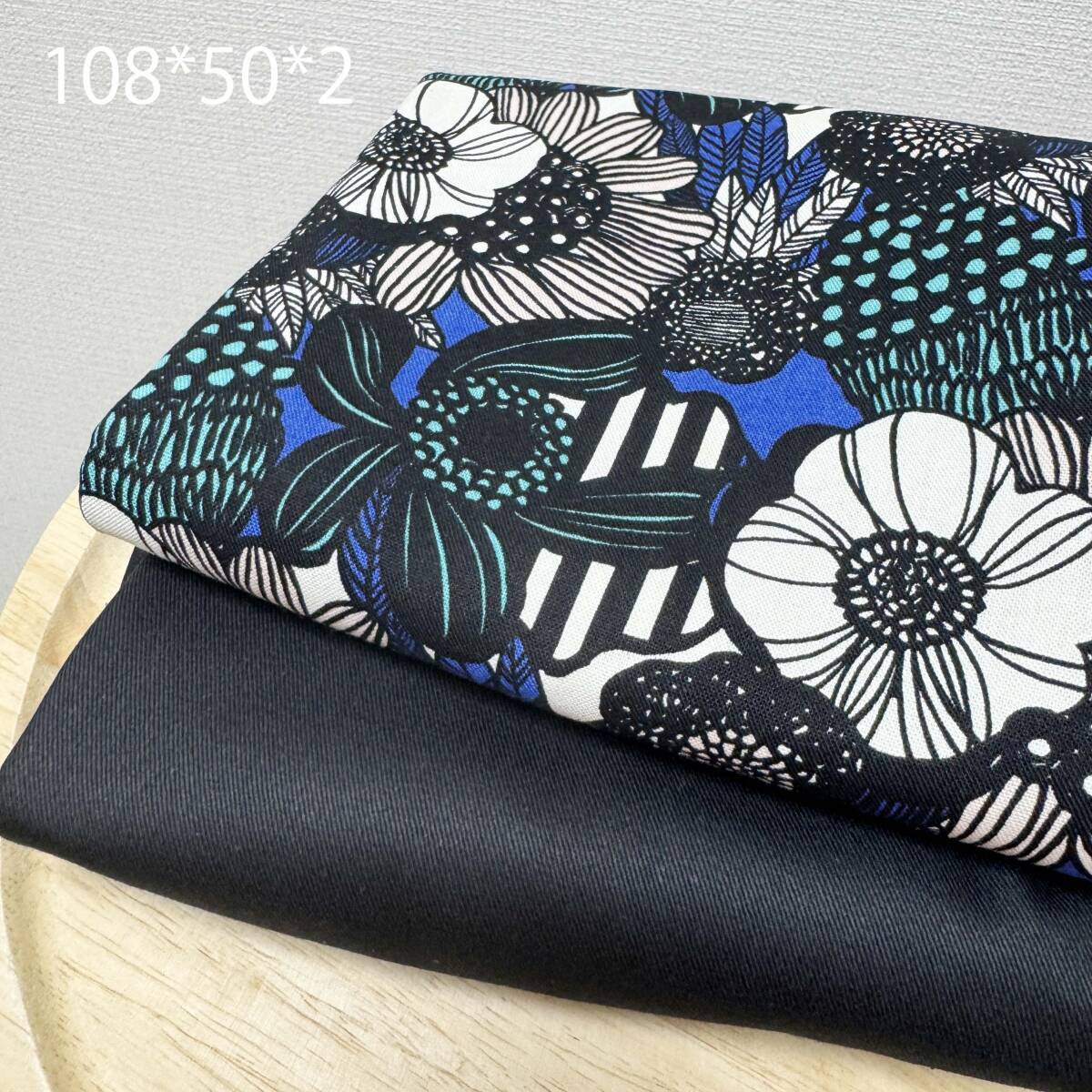 限定★北欧風モダン花柄キャンバス生地と無地カツラギ黒50cmずつロイヤルブルー黒