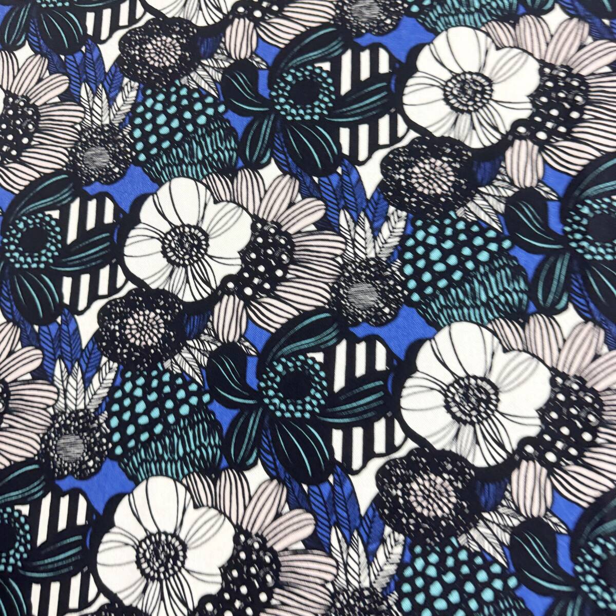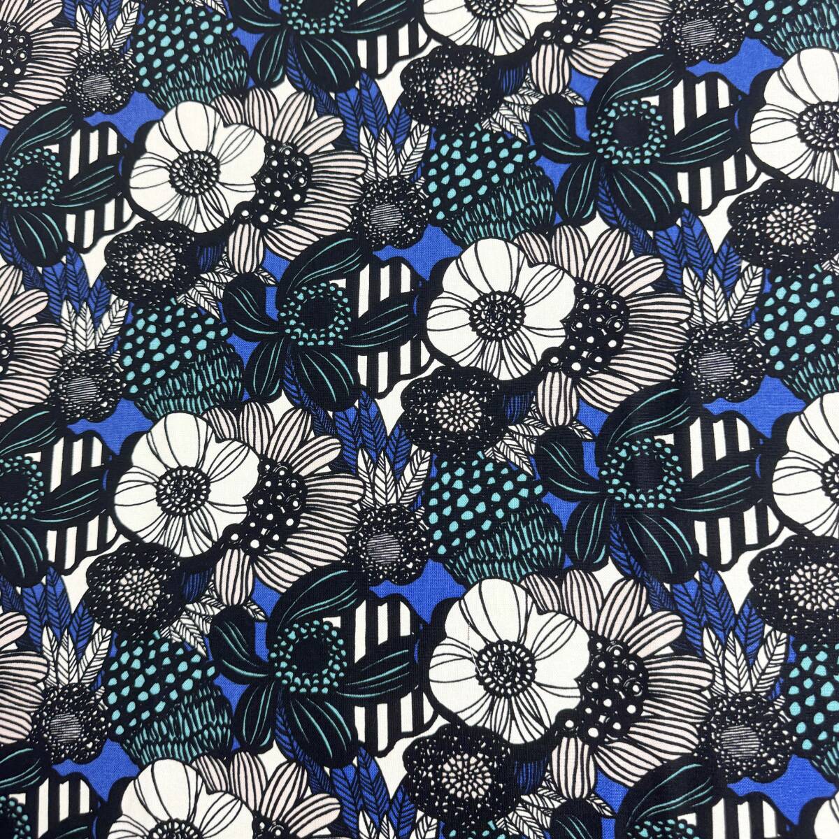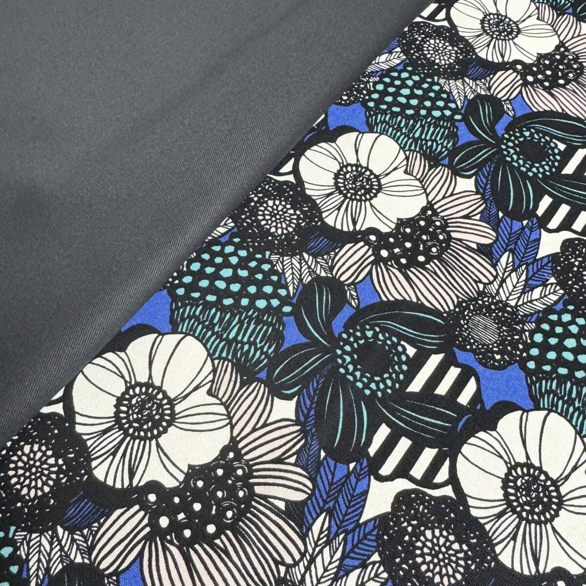 限定★北欧風モダン花柄キャンバス生地と無地カツラギ黒50cmずつロイヤルブルー黒