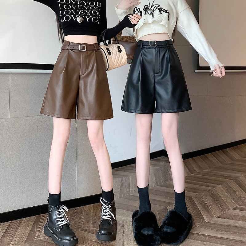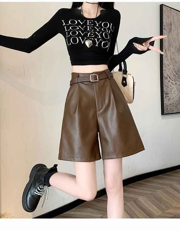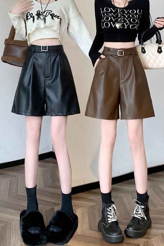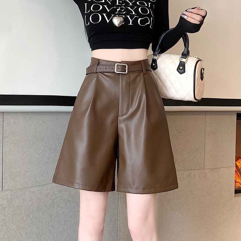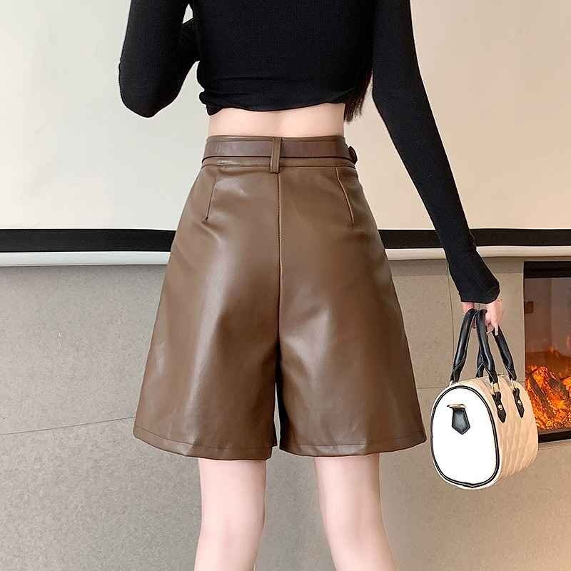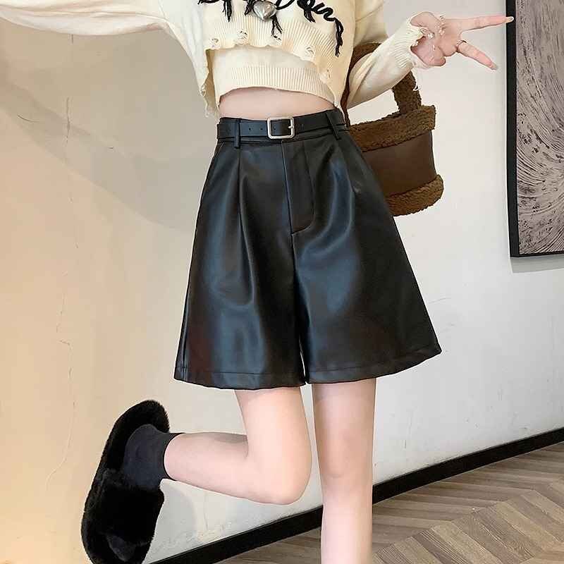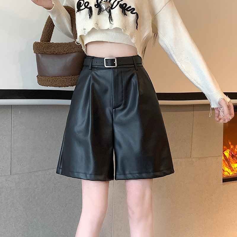 全2色 ショートパンツ ショーパン カジュアル シンプル PUレザー XL ブラック
