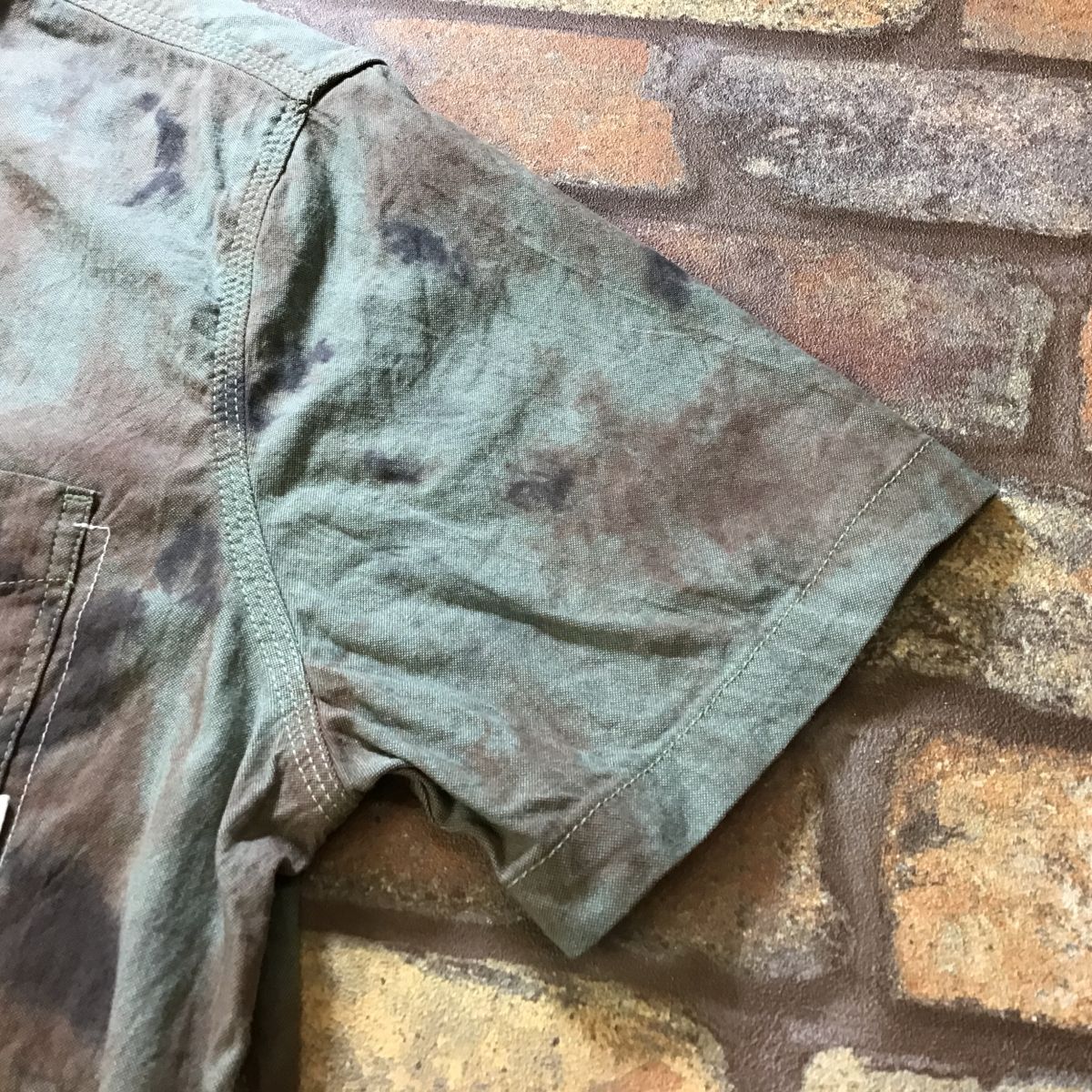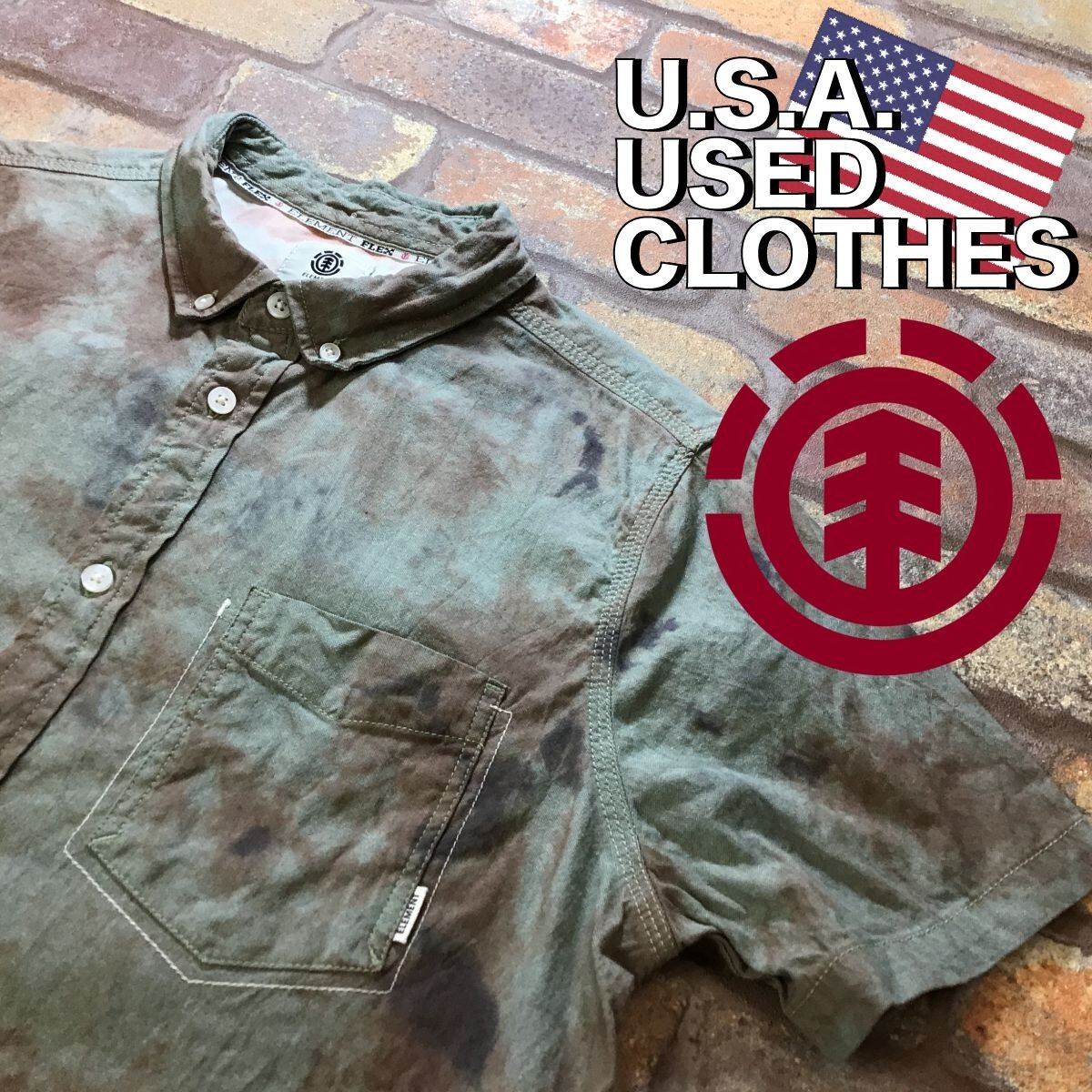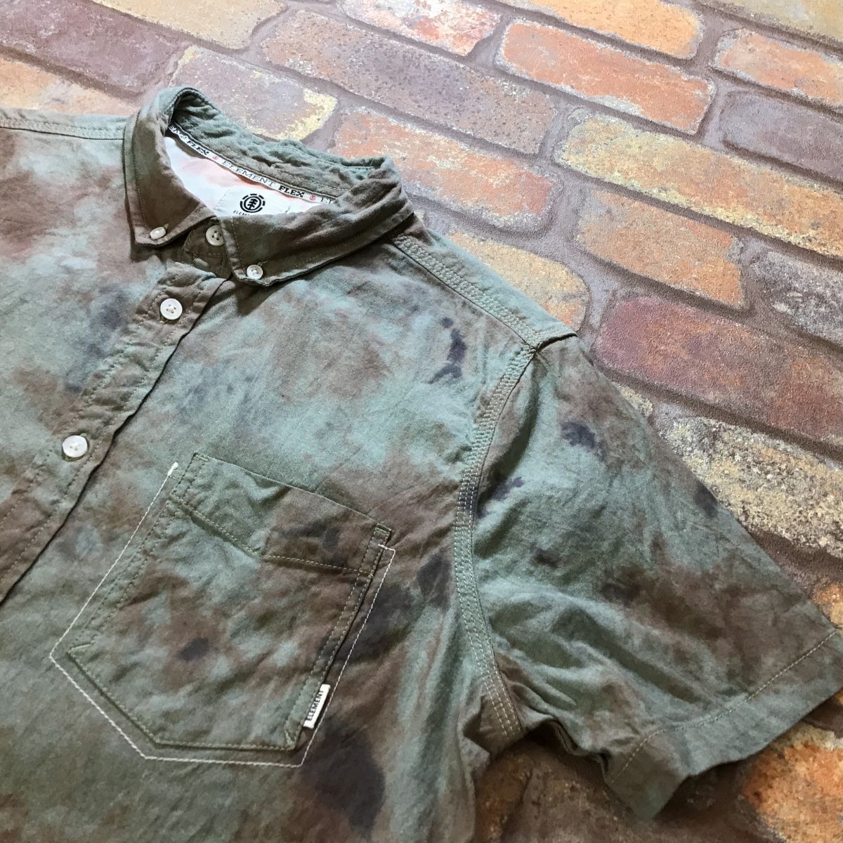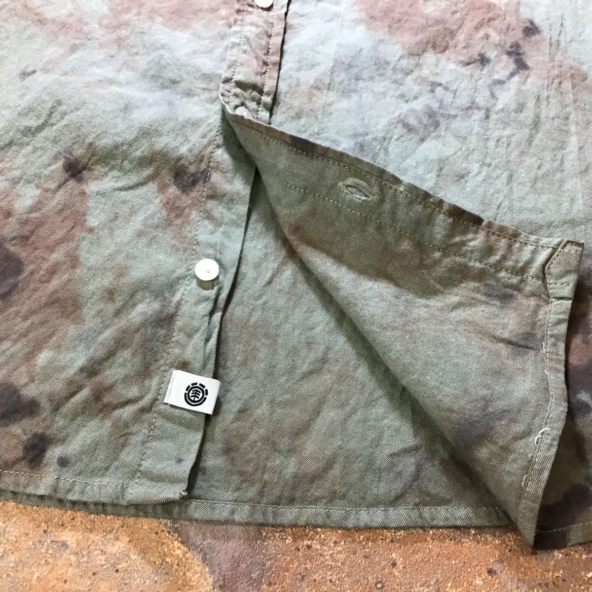 FP1-031★USA直輸入★レア1点物★【ELEMENT エレメント】チビ襟 染め模様 半袖 ボタンダウンシャツ[海外 M] カーキ 茶 黒 タイダイ お洒落