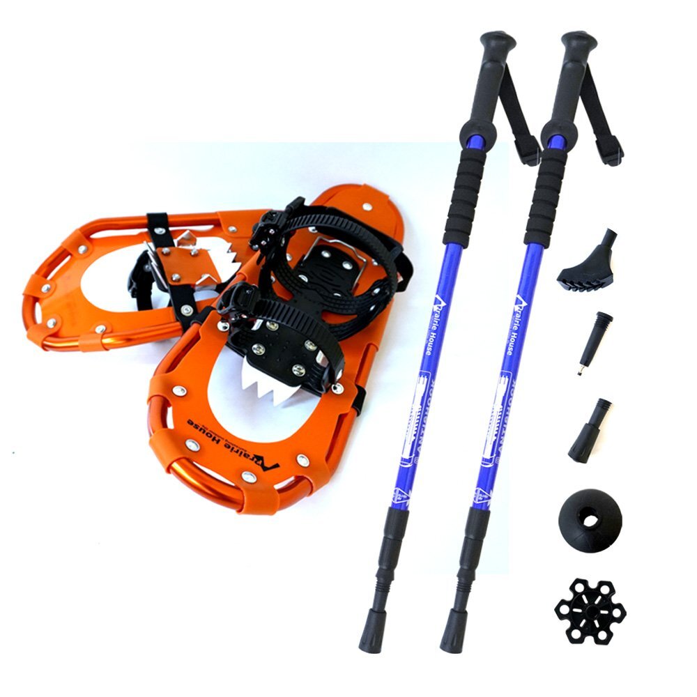 2点セット Prairie House 22インチ リフター付 スノーシュー トレッキングポール アンチショック スノーシュー橙 ポール青 XO843XO847OL