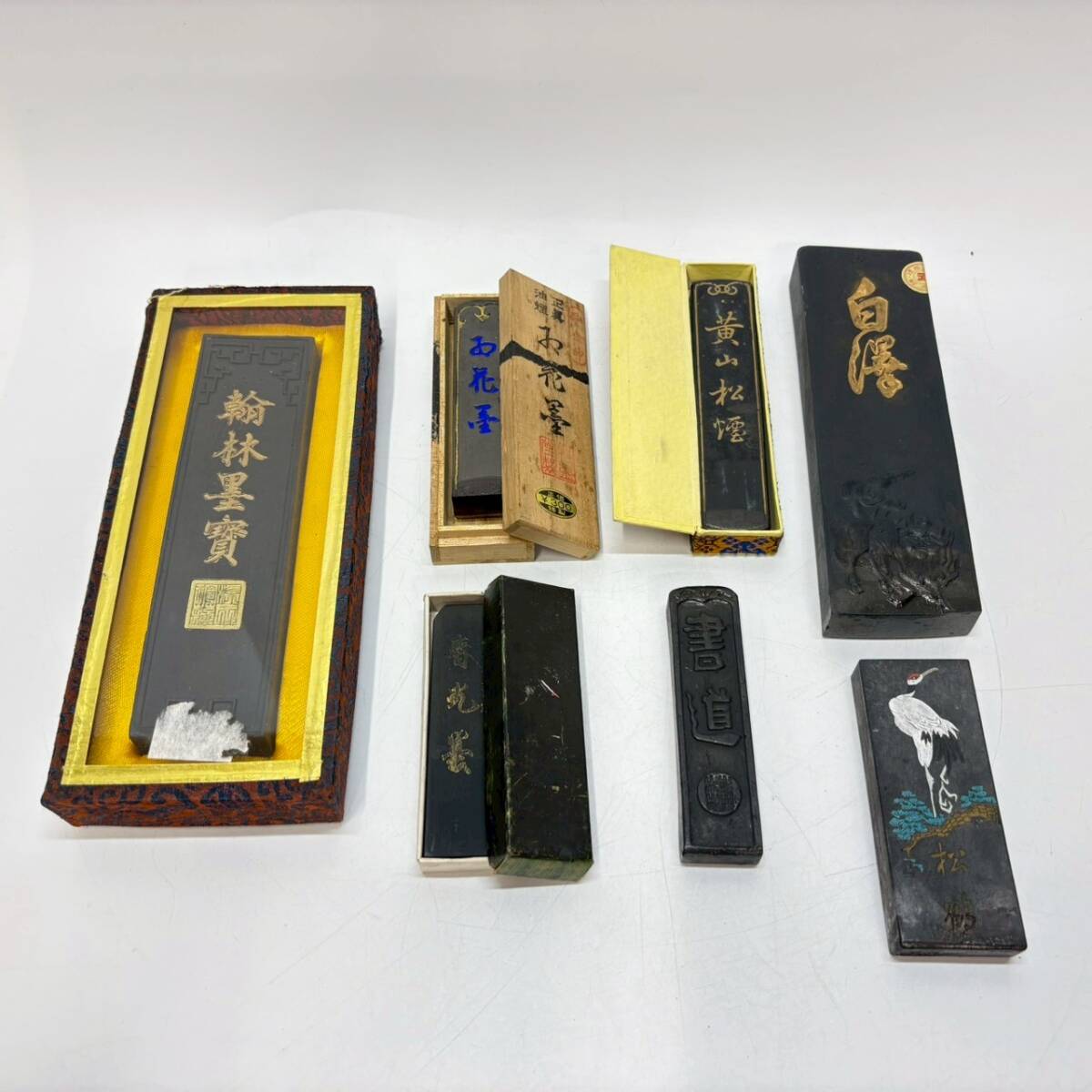 ★ 1円~【コレクター放出品】 固形墨 7点まとめ売り 古墨 唐墨 中国墨 黄山松煙 翰林墨寶 白澤 松鶴 習字 書道 書 書道具 習字道具 K161350