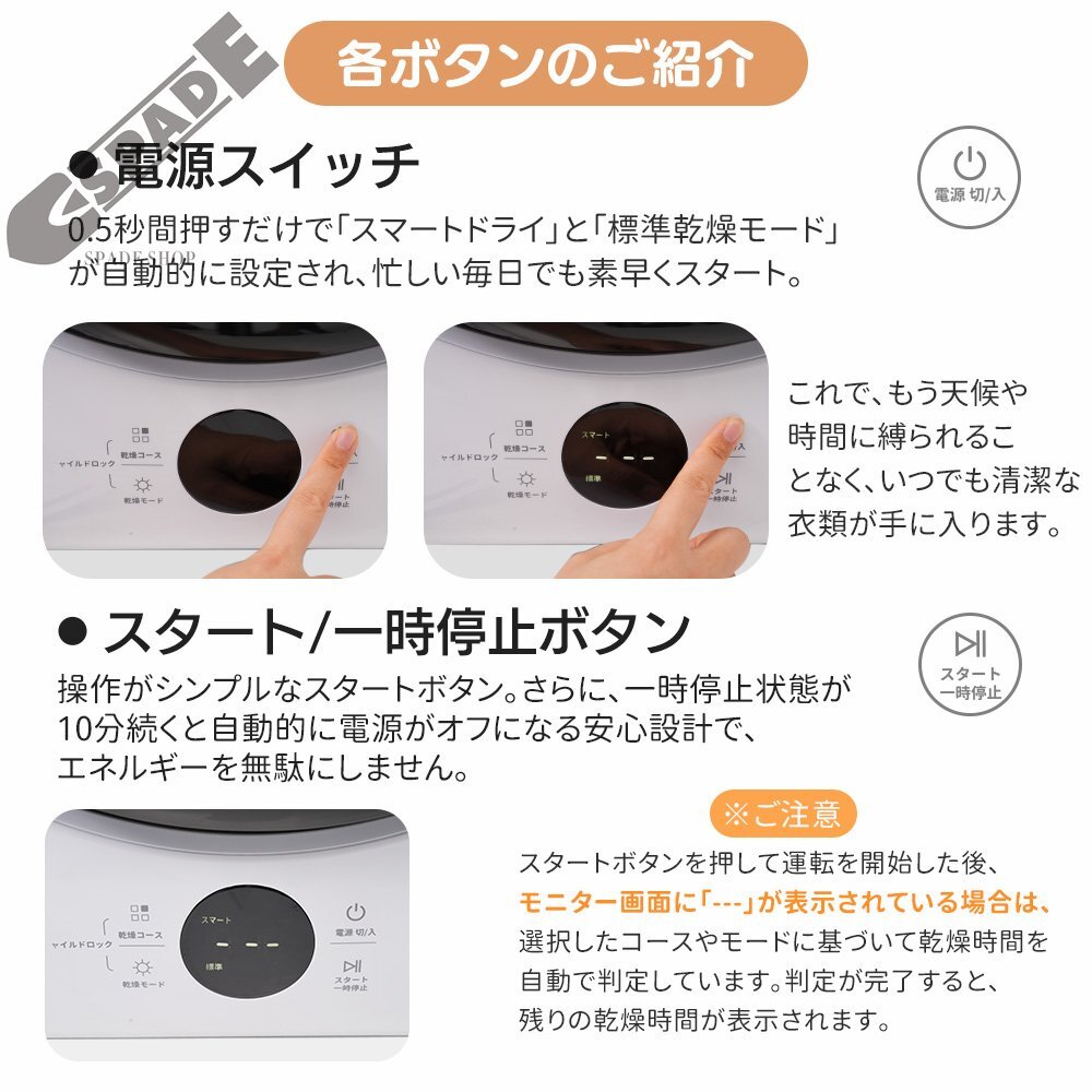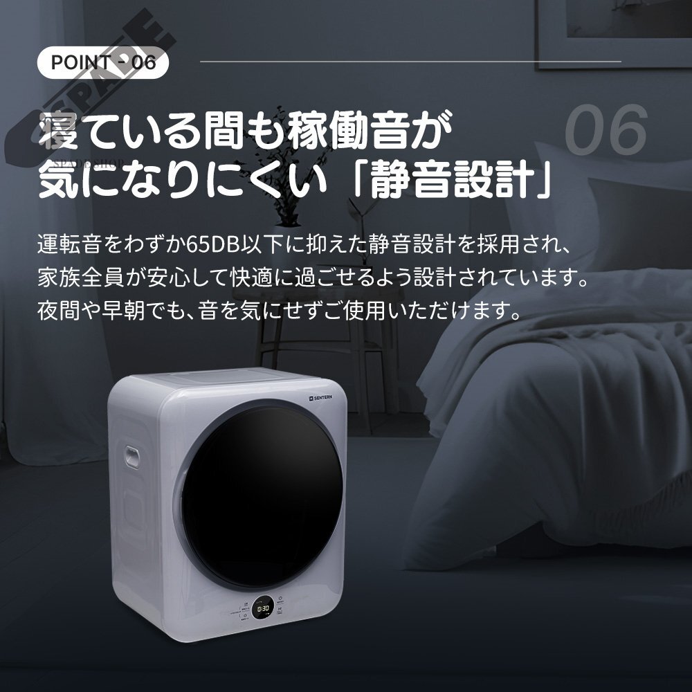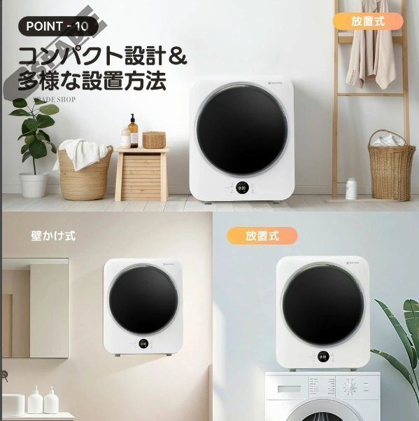 • ◎01小型ボディ・大容量で快適乾燥このコンパクトな乾燥機は、一人暮らしの方に最適な4kgの容量を備えています。シャツやタオル、日常使いの衣類を一度にしっかり乾燥でき、毎日の洗濯がストレスフリーに。天気を気にせず、雨の日でもいつでも清潔な衣類が手に入ります。洗濯量の目安(ご参照まで)シャツ(約10~15件)ジーンズ(約5~8件)タオル(約10~20件)寝具カバーセット(約1セット)