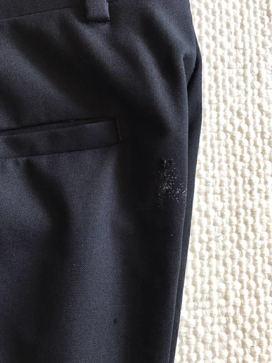 数回着用の美品ですが、写真の通り、パンツに一部擦れ跡がございます。着用にはさほど気にならない程度かと思いますが、お安く出品いたします。