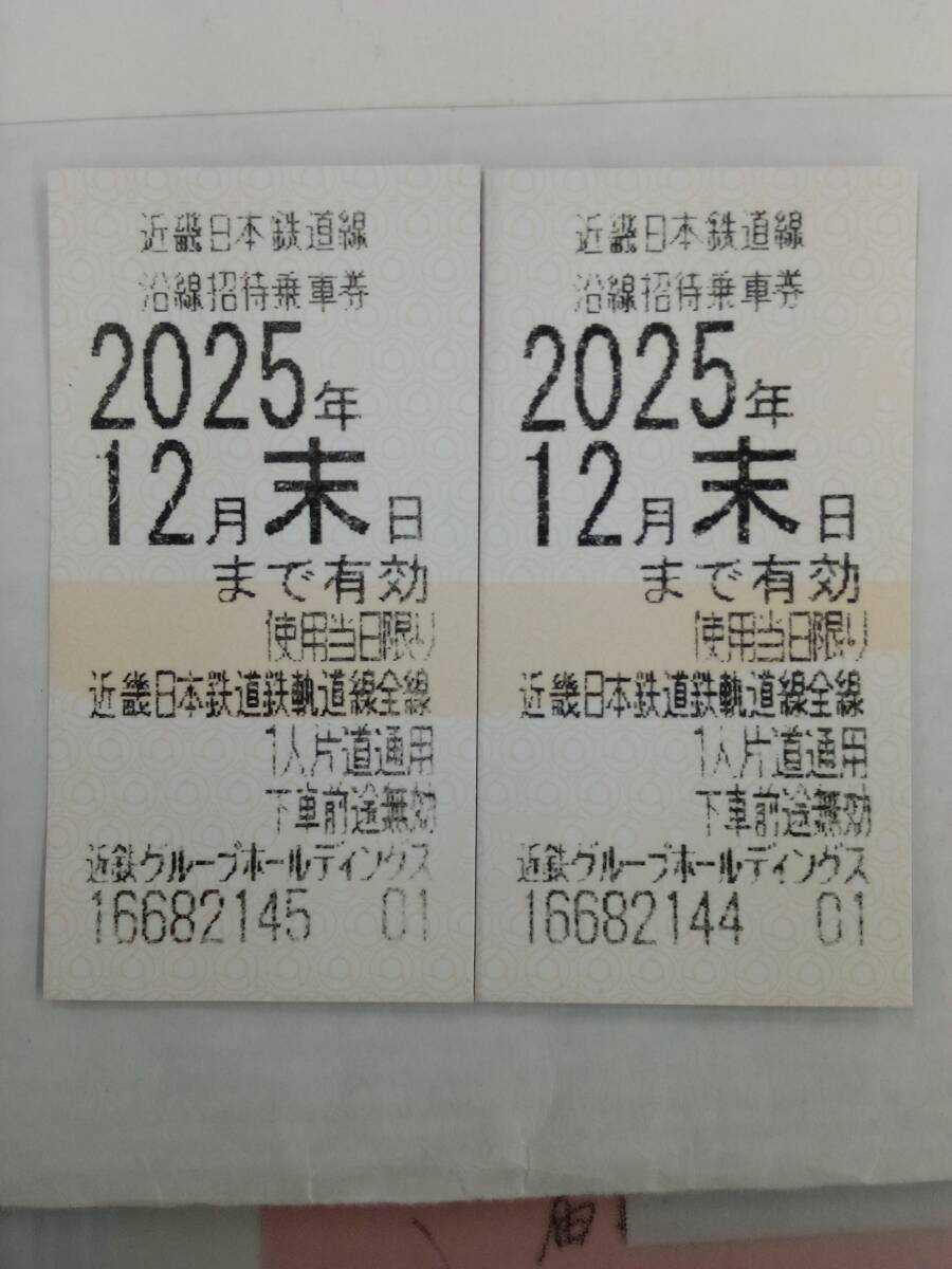 近鉄株主優待乗車券 2枚 2025年12月末日まで有効 定形外郵便のみ、送料込みで発送します。乗車券に表示されている番号は異なります