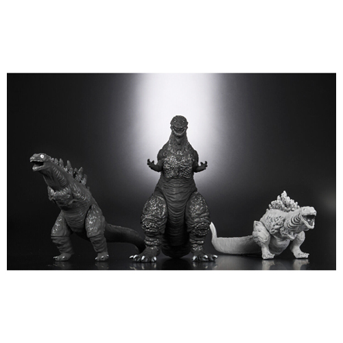 | 商品概要 | ムービーモンスターシリーズ シン・ゴジラ:オルソ 3形態セット リアルな造形と彩色表現が人気のソフビフィギュア「ムービーモンスターシリーズ」に、『シン・ゴジラ:オルソ』に登場する「ゴジラ(2016)」の3形態セットが登場! 映画『シン・ゴジラ:オルソ』は、2016年に公開された『シン・ゴジラ』をベースにしたモノクロ版で、2023年に実施されたイベントにて初上映された作品です。 「オルソ」とは、モノクロフィルムのひとつである「オルソクロマチックフィルム」の略称で、現在主に流通しているモノクロフィルム「パンクロマチックフィルム」よりも、映像のフェイストーンが重くなることが特徴とされています。 本商品は、劇中に登場するゴジラの3形態がセットになっており、各形態固有の姿を忠実に造形再現していることはもちろん、一体ごとに異なる塗料の色味や彩色技法を選定し、「オルソ」版ならではの独特な質感を追求しました。 | |||
