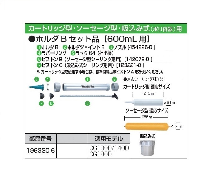 マキタ製の充電式コ-キングガン用ホルダBセット品[600mL用](196330-6)です。