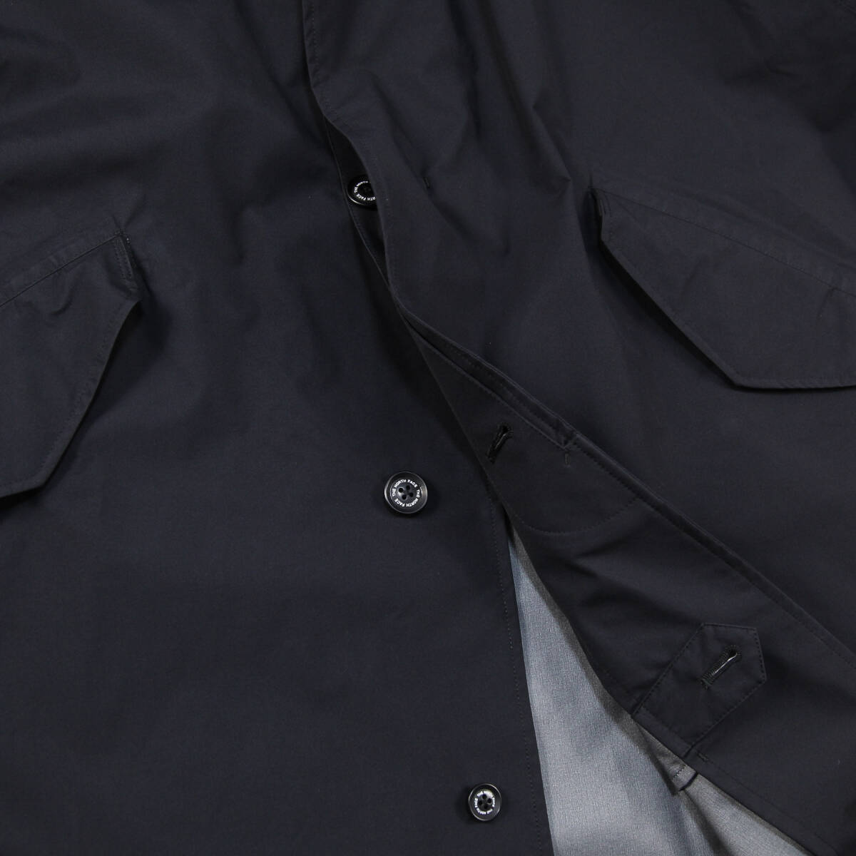 アメリカ軍のオーバーコート M65をモチーフとしており、Tシャツや厚めのダウンの上からも羽織れるよう、太いアームホールや袖口を絞り込むことができるストラップ、フラップ付きのスリットポケットを配置。