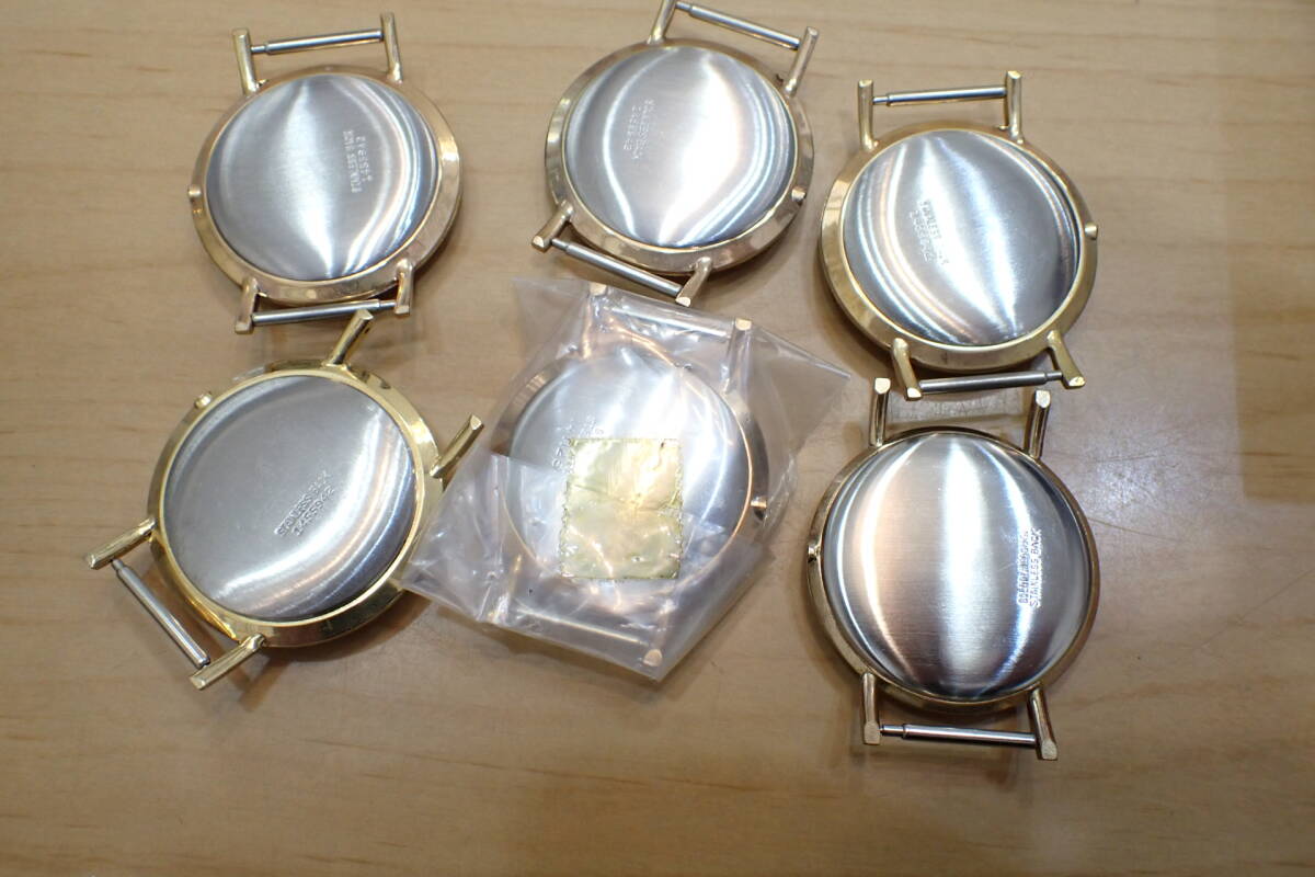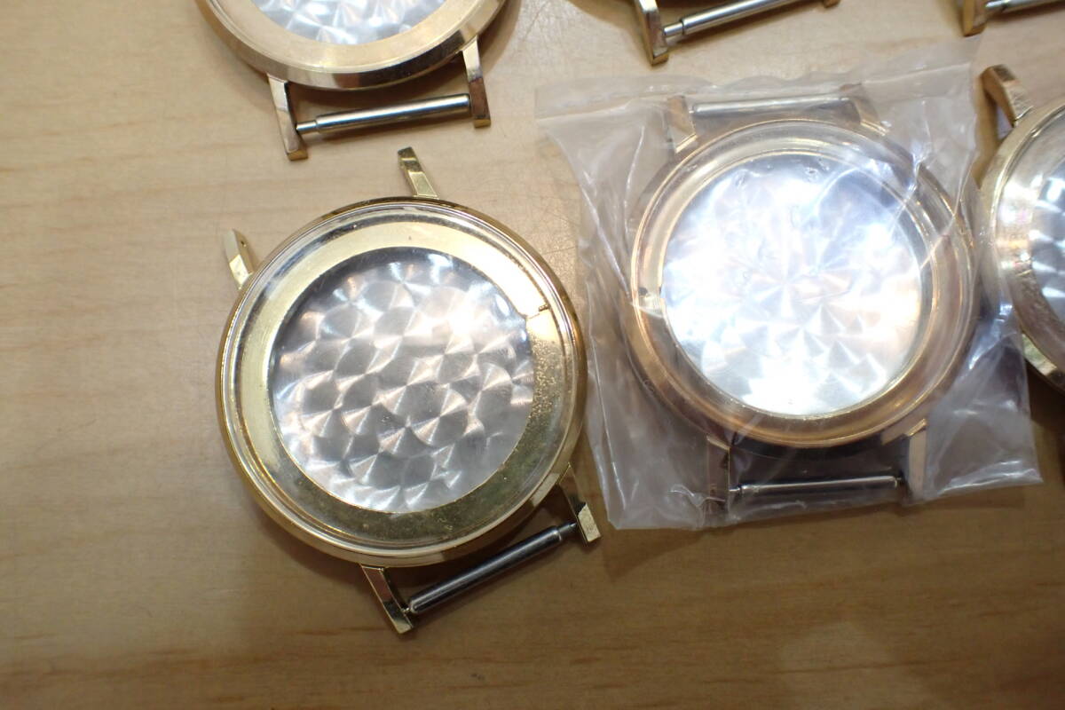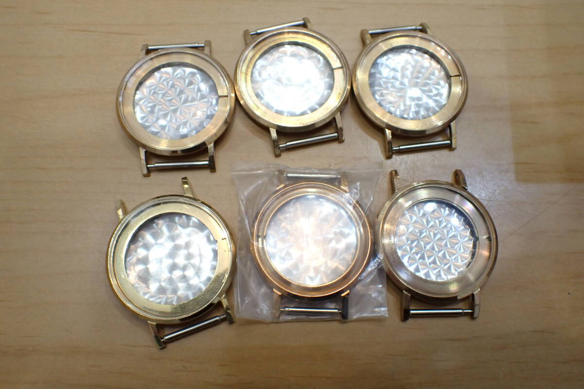 デッドストック スイス/セイコー/シチズン等に ケース/ガラス/裏蓋等 6個セットです。 デッドストック品です。 ケース、風防、裏蓋などのセットです。 ほとんどが未使用に見えますが、写真でご確認ください。 ジャンクでお願いします。 ケース径約36mm !オークション終了後、24時間以内に「お取引を始める」ボタンをクリックして、必ず取引をスタートして下さい。 取引のスタートが無ければ、削除させていただきます。 必ず厳守してください! 「新規ID」「直近で悪い評価が多い方」のトラブル(イタズラなど)が非常に多いです。 当方が、お取引に支障があると判断したID(特に新規ID)は削除します。 ●ジャンク品と記載の物の商品到着時の動作保証はありません。 ●付属品等は、写真に写っているものですべてです。 | ||||