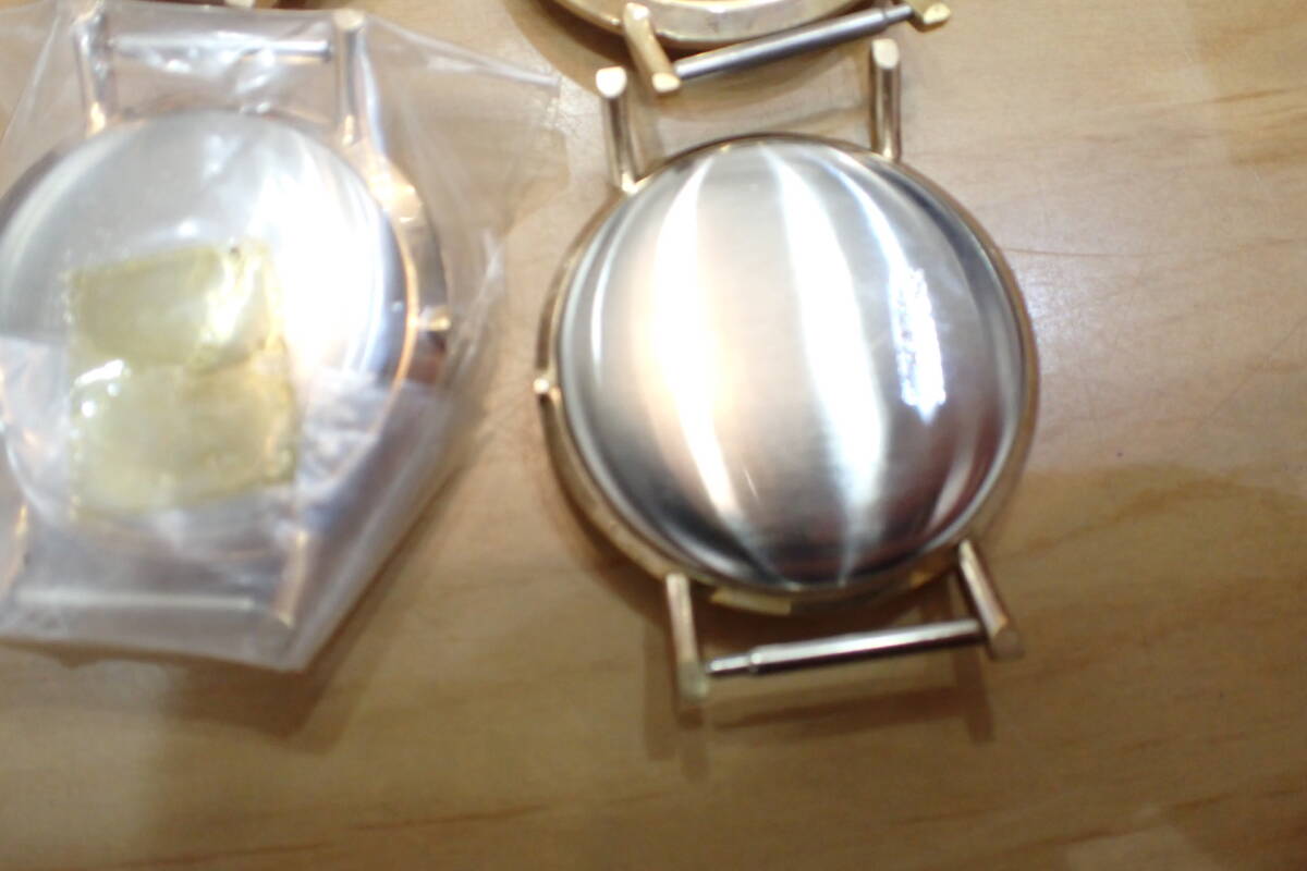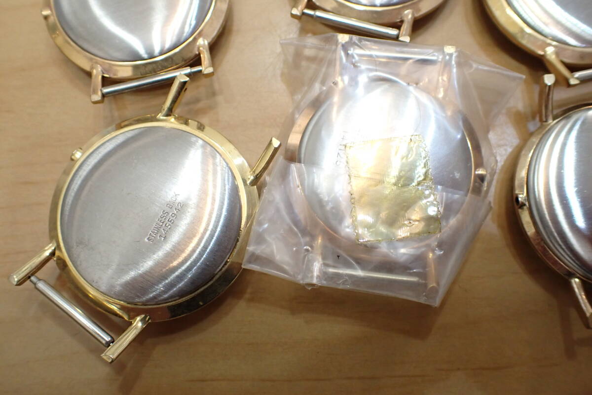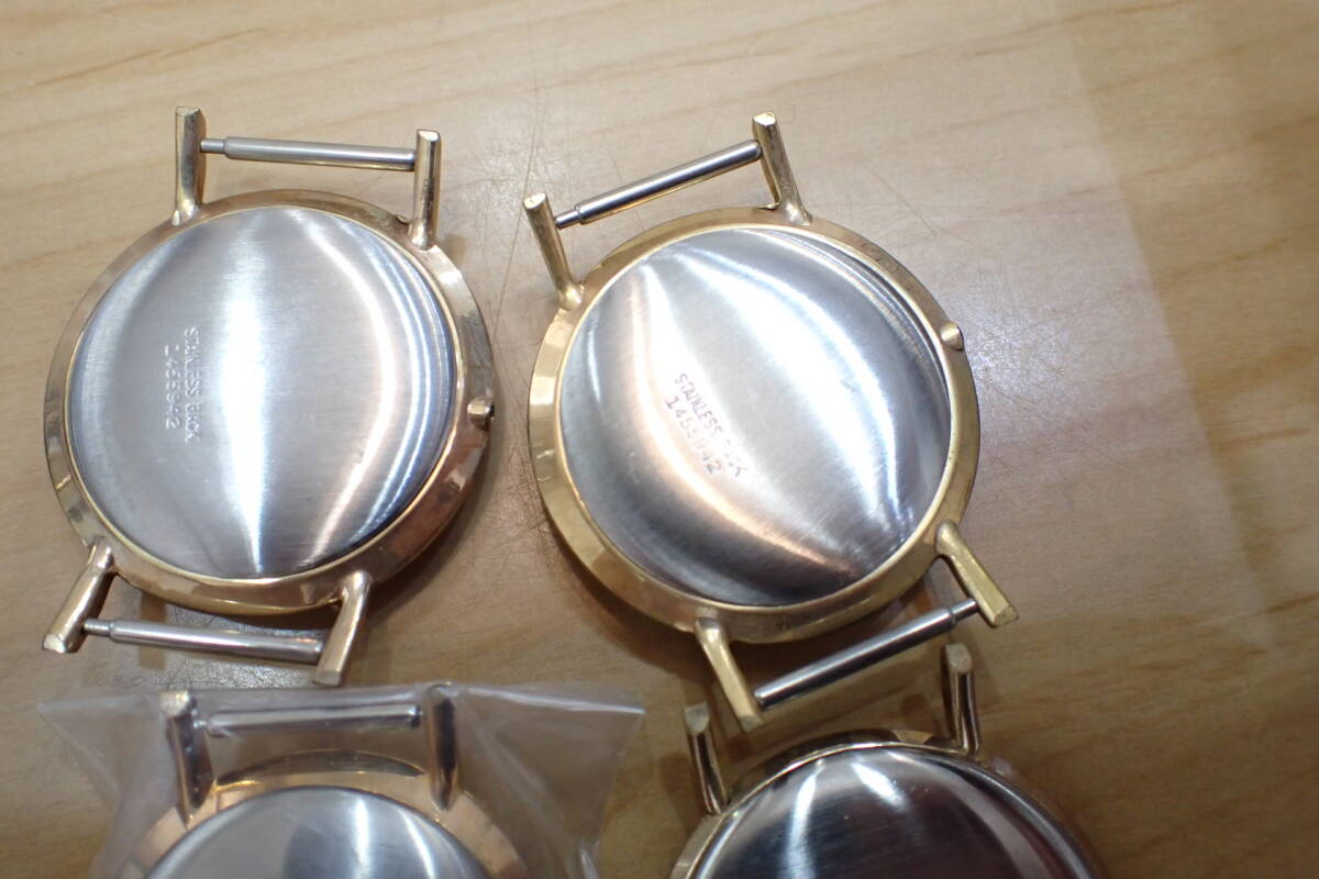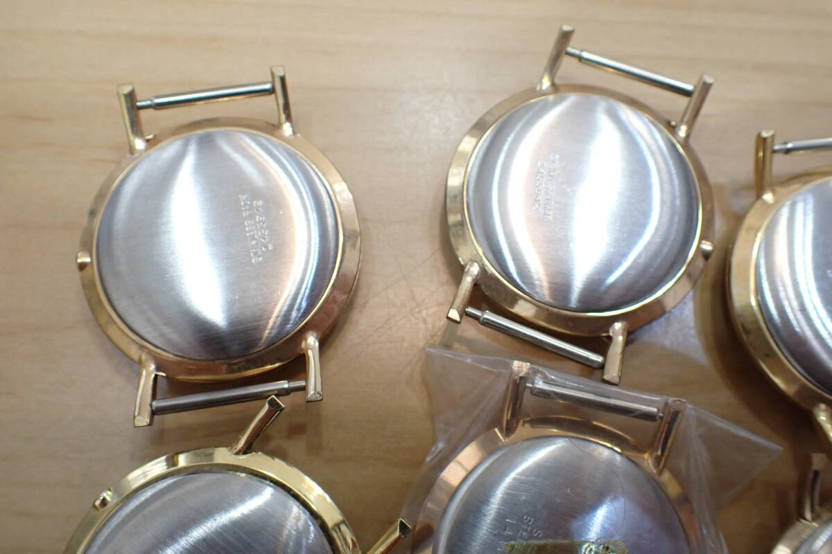 デッドストック スイス/セイコー/シチズン等に ケース/ガラス/裏蓋等 6個セットです。 デッドストック品です。 ケース、風防、裏蓋などのセットです。 ほとんどが未使用に見えますが、写真でご確認ください。 ジャンクでお願いします。 ケース径約36mm !オークション終了後、24時間以内に「お取引を始める」ボタンをクリックして、必ず取引をスタートして下さい。 取引のスタートが無ければ、削除させていただきます。 必ず厳守してください! 「新規ID」「直近で悪い評価が多い方」のトラブル(イタズラなど)が非常に多いです。 当方が、お取引に支障があると判断したID(特に新規ID)は削除します。 ●ジャンク品と記載の物の商品到着時の動作保証はありません。 ●付属品等は、写真に写っているものですべてです。 | ||||