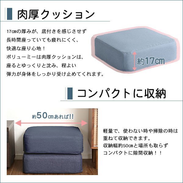 | 【カラー】 ベージュ、ブラック、ブルー、ブラウン、グリーン、グレー、ライトブルー、レッド 【サイズ】 W48xD48xH17cm/個 【重量】 1.5kg/個 【素材】 中材:ウレタンフォーム カバー:表地ポリエステル100% 裏地ポリエステル100% 【梱包】 サイズ:W44xD40xH48cm、重量:3.5kg 【その他】 日本製(カバーは中国製) 【完成品】 カバーはお客様取り付けです。 【ご注意】 ・サイズ、重量は概算です。 ・商品カラーはご使用のモニターによって実際の明るさや色と異なって見える場合がございます。 |
