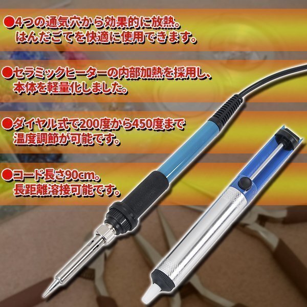 60W&110Vの仕様、ダイヤル式で200度から450度まで温度調節が可能です。