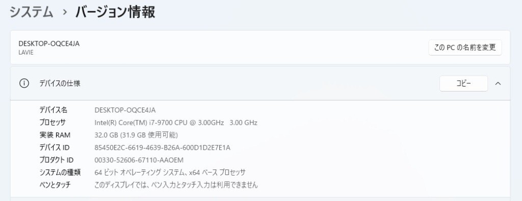 【即決・送料無料】Windows11 Pro 25H2 NEC LAVI モニタセット / 快適・快速 / Corei7-9700 / SSD 500GB / メモリ32GB / Microsoft Office
