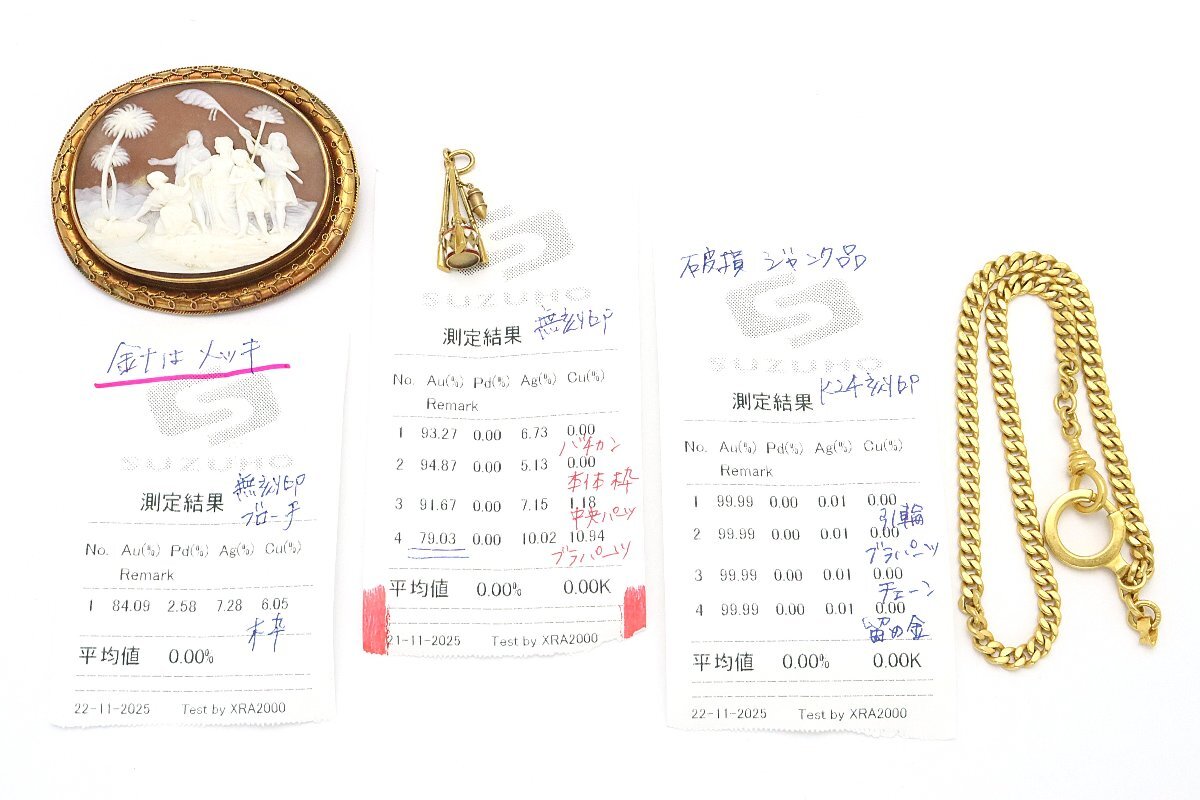 おたからや◆K18~K24相当ジュエリー3点《43.4g 一部メッキ,ジャンク品含》 カメオブローチ等【C-YA02663】