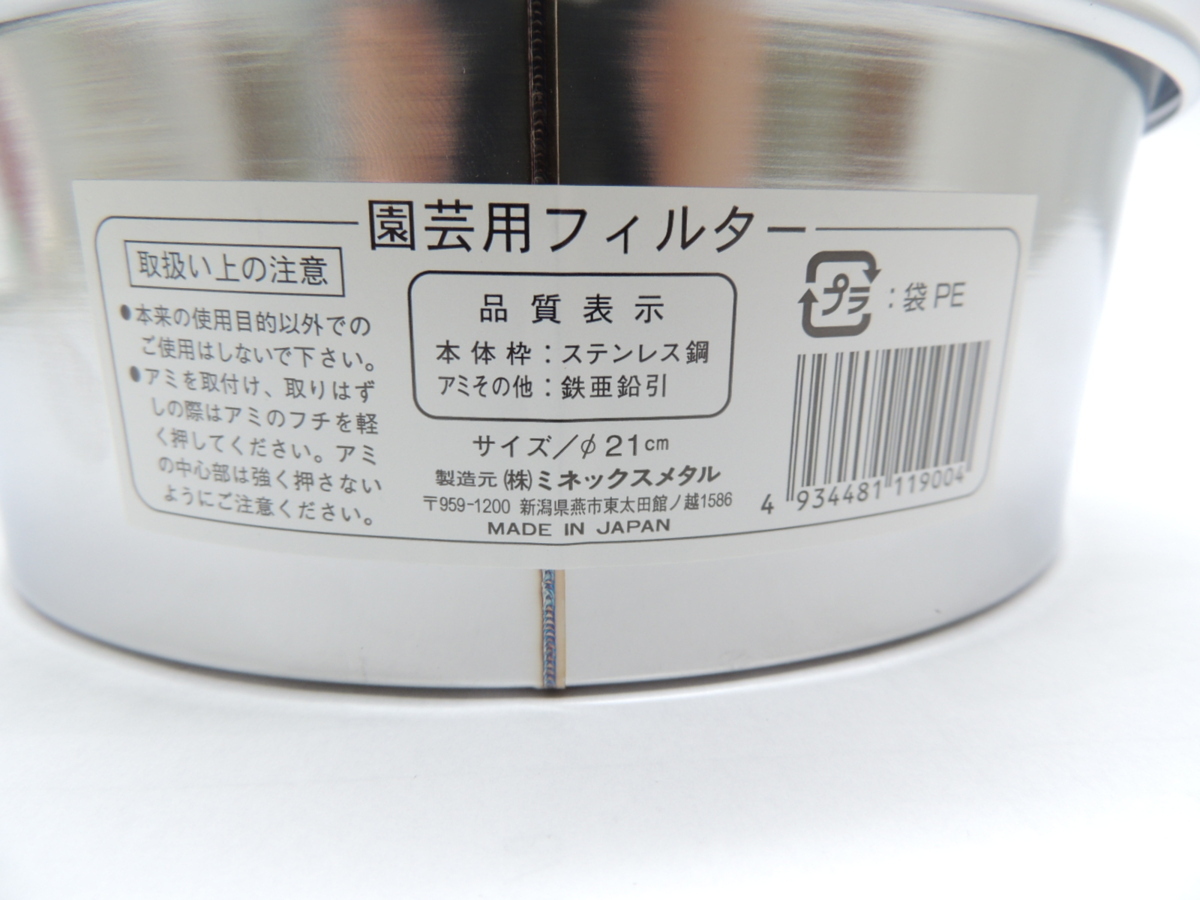 ・ミネックスメタル 園芸フィルター 21cm JAN 4934481119004 フィルターは3枚(荒・中目・細目) 1個