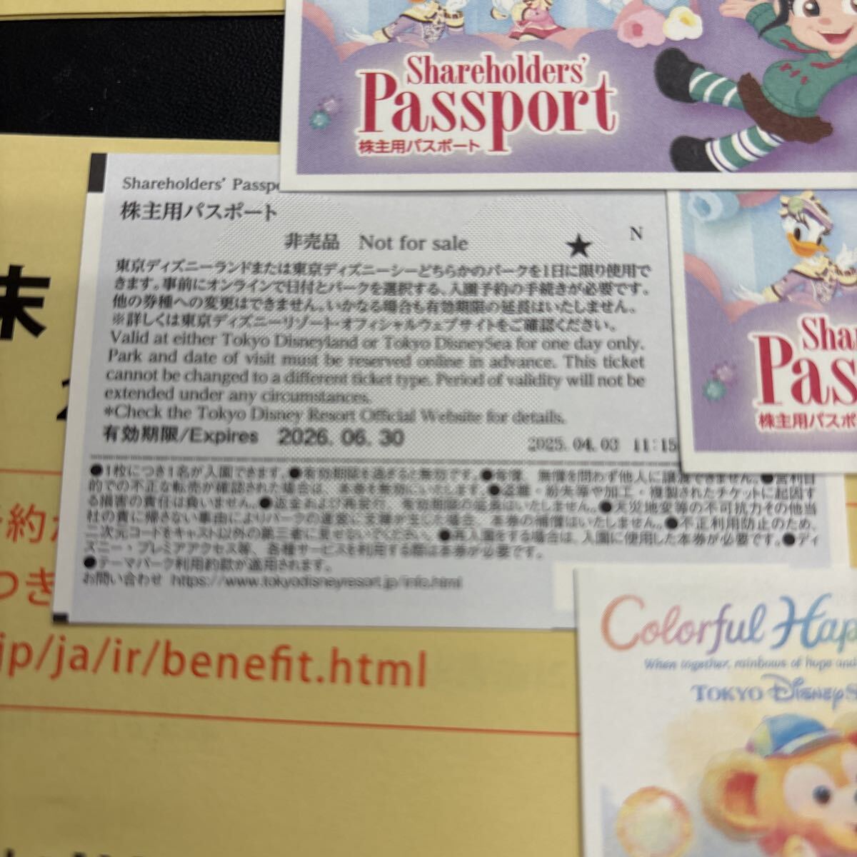 こちら、オリエンタルランド 東京ディズニーリゾート株主用パスポート4枚セットになります。