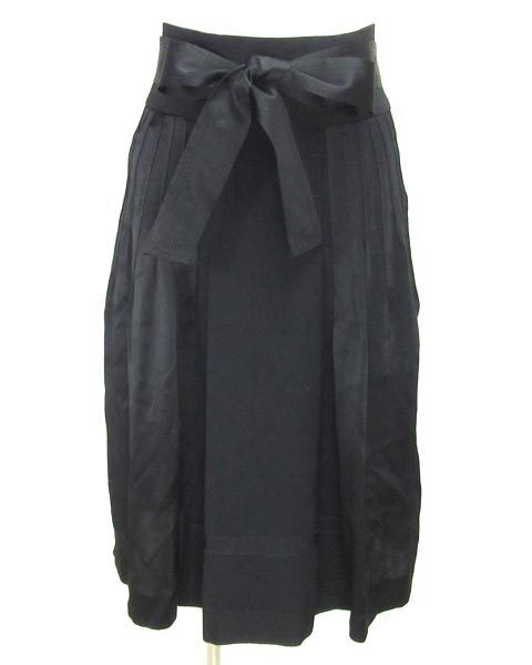 | アルベルタフェレッティのお上品なプリーツスカート。光沢ある素材などと素材違いの部分との組み合わせやステッチやグログランリボン使いなど、シンプルなお色目ながらもデザイン性や華やかさのある1枚。ウエストのリボンベルトがポイントで、スカートインするコーデが楽しめます。生地感やデザインなど高級感があります。流行に左右されないデザインですので、長年愛用頂けますよ。 |