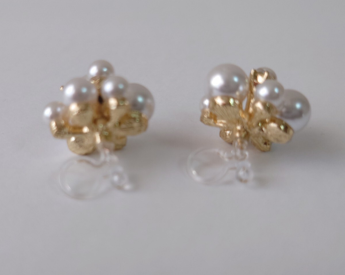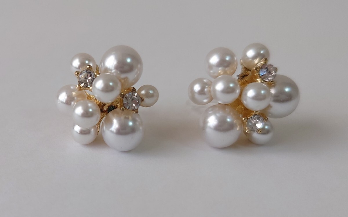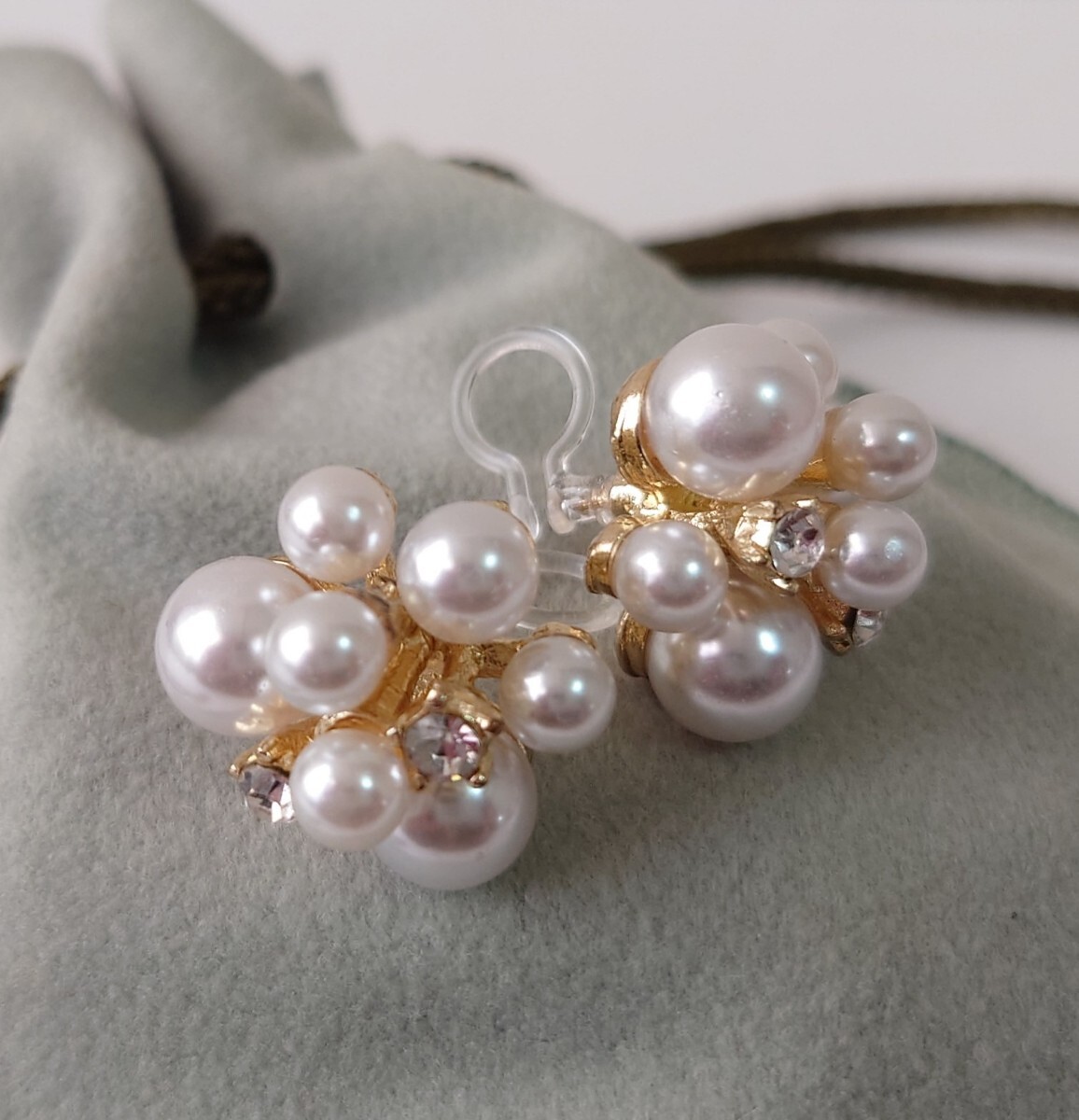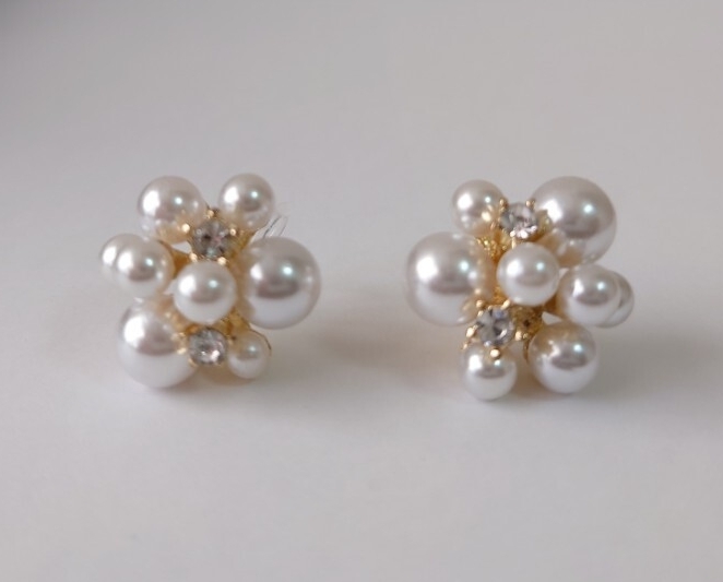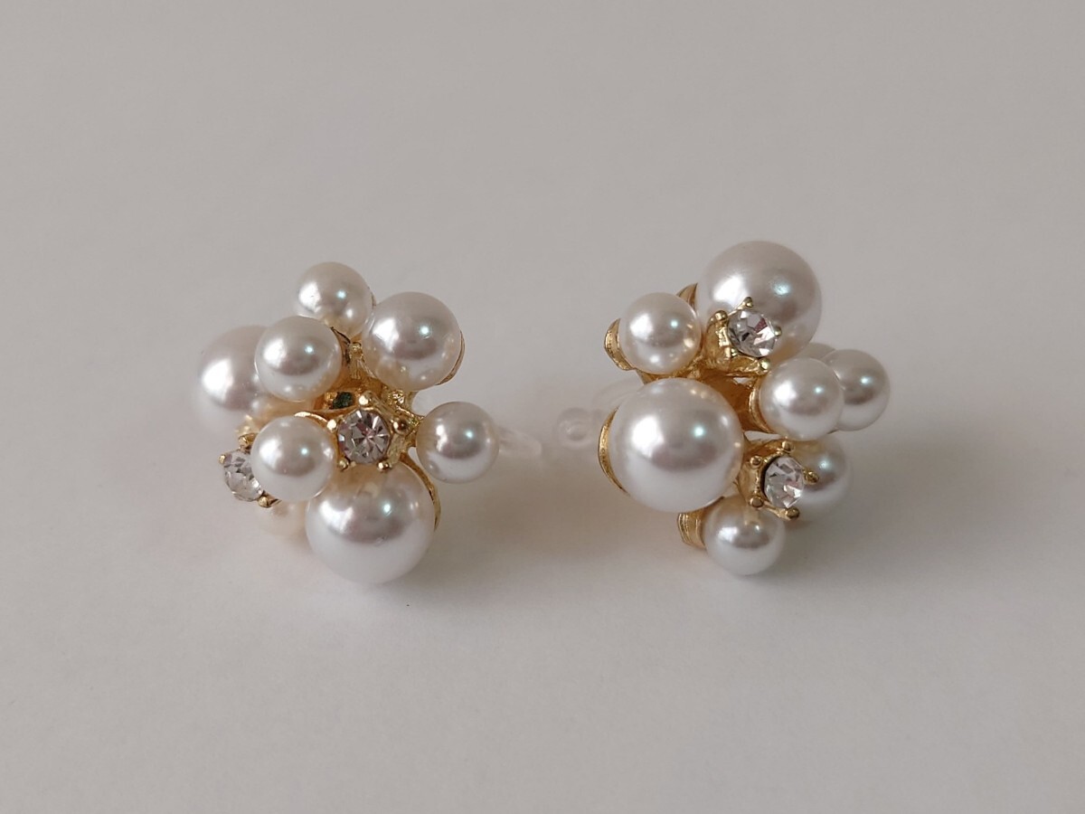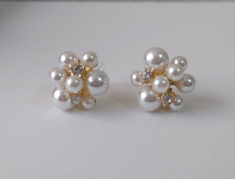 新品 AKKA ノンホール イヤリング パール クリスタル クリスマス 金属アレルギー対応