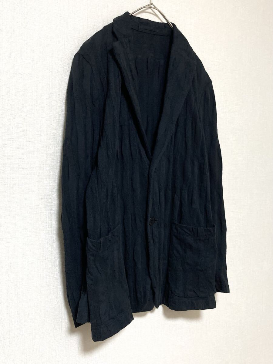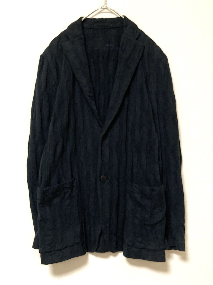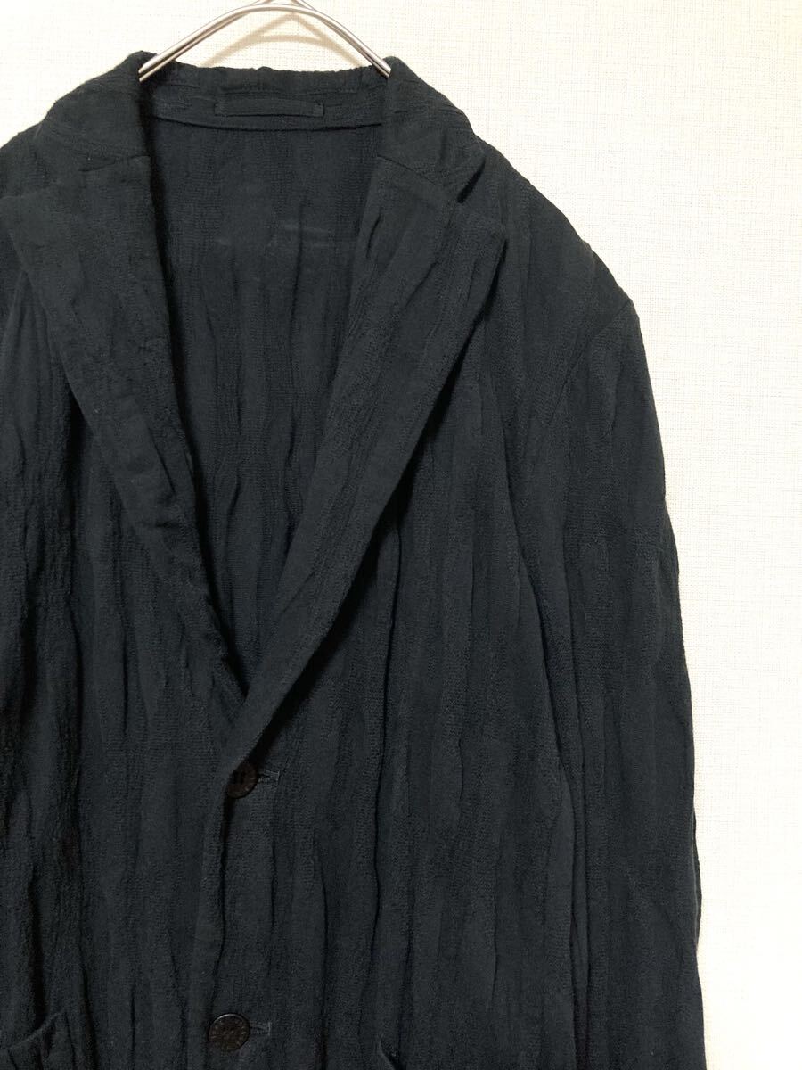 織地によるシワのような凹凸感のある素材を用いたテーラードジャケットです。