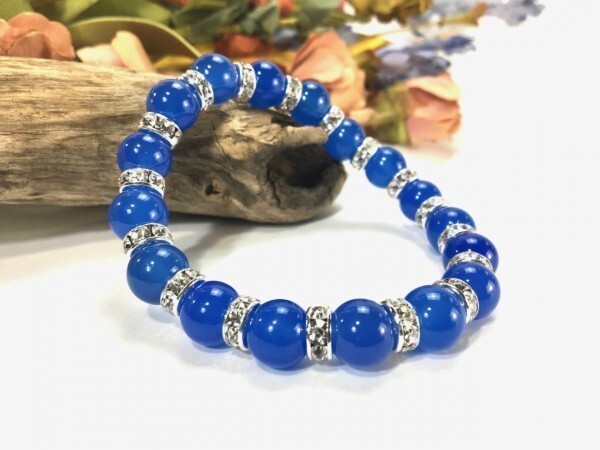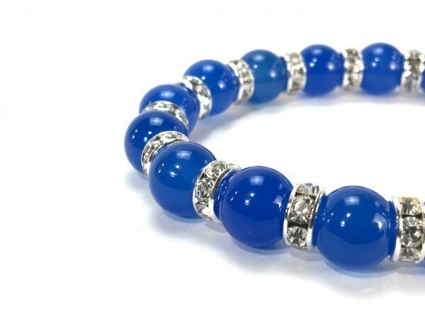 こちらは、10mm玉のブルーメノウを使用したパワーストーンブレスレットです。間にはロンデルを挟み高級感あるブレスレットに仕上げています。石大きさは腕にも馴染みやすいように10mm玉を使用して、サイズは内径約18cmです。(サイズ調節も無料で承っています。サイズ変更の場合は落札後、取引ナビにてご一報くださいませ。) 数に限りがございますので気になる方はお早めにどうぞ。