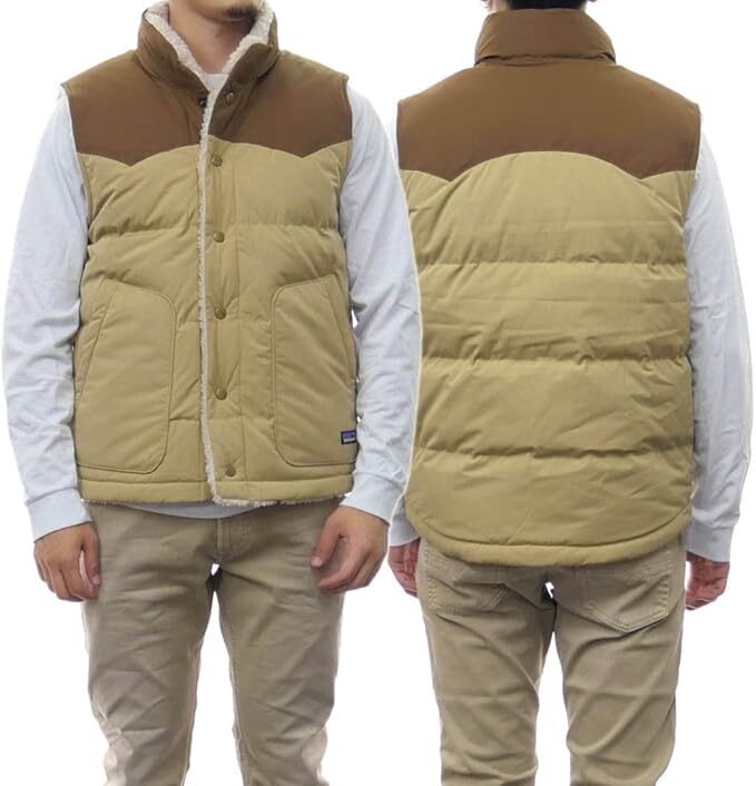 | ★商品説明★ | 【メーカー・商品名】 パタゴニア ビビーダウン リバーシブルベスト メンズMサイズ の出品となります。 【仕様・状態等】 カラー:CLASSIC TAN サイズ:M 肩幅45.5cm 身幅58cm 着丈68cm ← 素人採寸ですので、誤差はご容赦ください。 素材:シェル:リサイクルポリエステル100% ヨーク:リサイクルナイロン100% 裏地:リサイクルポリエステル100% インサレーション:リサイクルダウン100% 状態:中古 パタゴニアオンラインストアで新品を購入しましたが、着用の機会が少ないまま保管しておりました。。 どなたかの手元で活躍させていただけたらと思い、こちらに出品いたします。 室内にての試着のみです。 ★以下、他サイト様の紹介文より引用(2025.10.31現在)★ リバーシブルで着用できる、耐水性を備えたダウンのインサレーション入りベスト。 保温性と機能性と耐久性のバランスをとったアウトドアウェアとしても、シティウェアとしても活躍すること間違いなしのアイテム。 保温性と機能性と耐久性をバランスよく提供 スナップボタン仕様で、ちょっとしたアクセントに。ボアベストとして着ると、レトロエックスシリーズの胸ポケットデザインと同様、パターン切り返しになっており、ジップ付きのポケットが施されているためさり気ないアクセントになります。 | |
