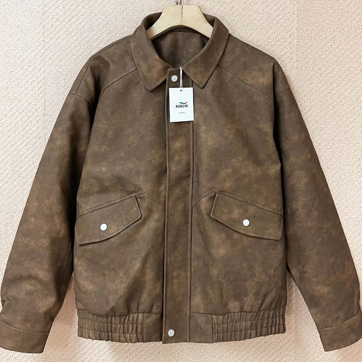 人気ヨーロッパ製※定価12万◆ブルガリア発※RISELIN レザージャケット 薄手 撥水 ソフト 折り襟 アウター ライダース 革ジャン バイク 秋冬 XL/50サイズ