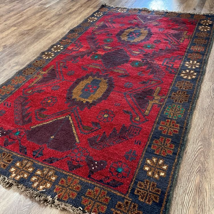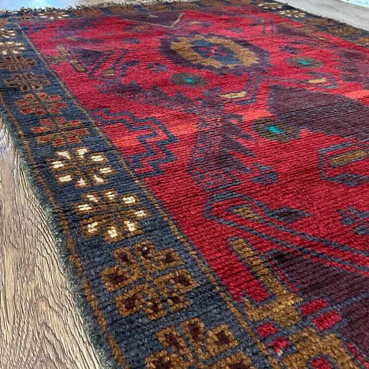★新品★193×109cm アフガニスタン・ヘラート産 絨毯 トライバルラグ ハンドメイド リビング ディスプレイ カーペット 02AMBRL251118002D